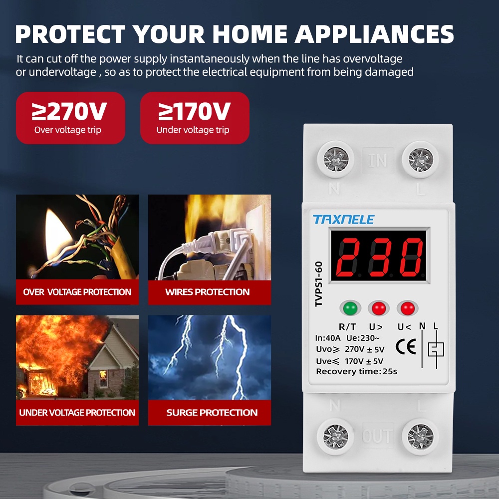 Din Rail Over Voltage and Under Voltage Protective Device Protection Relay 40A 63A 230V Voltage Protector