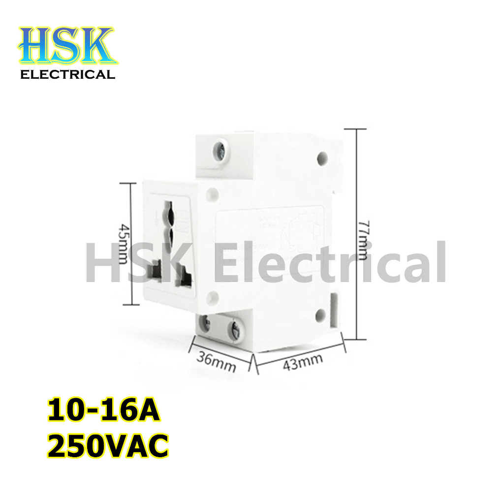 Din Rail Type Outlet 10~16A 250VAC 2P+E