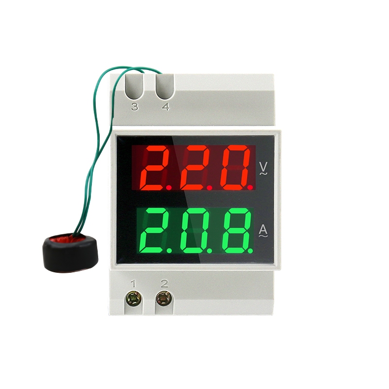 Din Rail Voltmeter Ammeter D52-2042 220V 380V Digital AC Voltage Current Meter LED Display Electric Meter