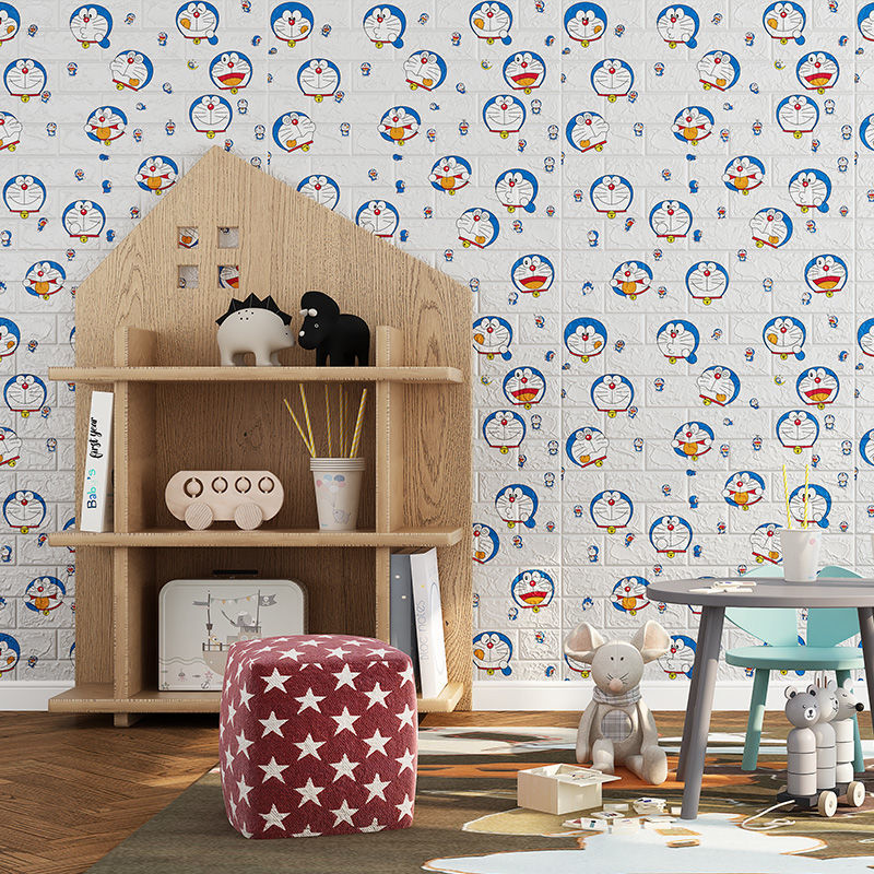 Dinding 3d Doraemon WallPaper Cartoon Design Wall Stickers Waterproof Anti Collision for Girls Bedroom