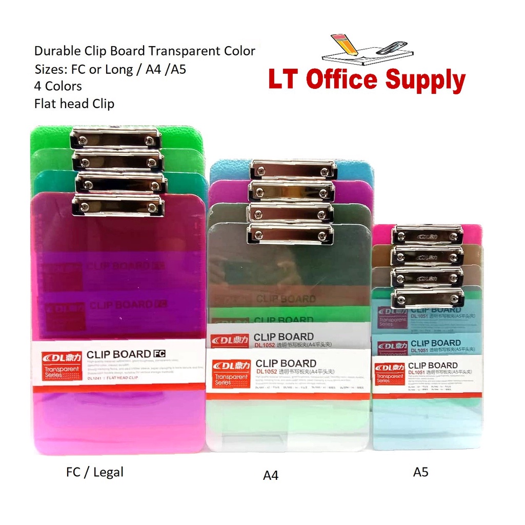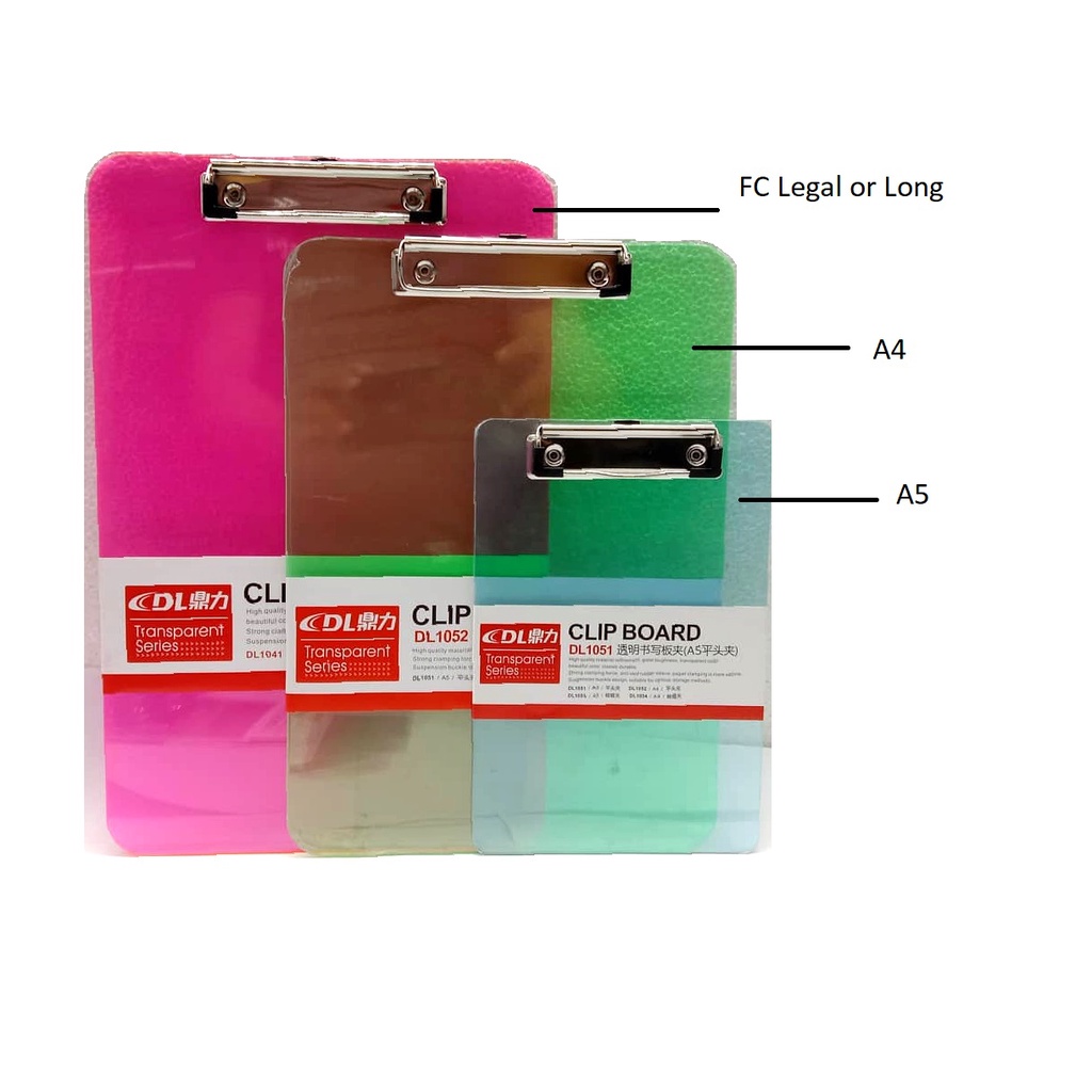 Dingli DL Office Clip Board Durable Plastic Clipboard Translucent Color