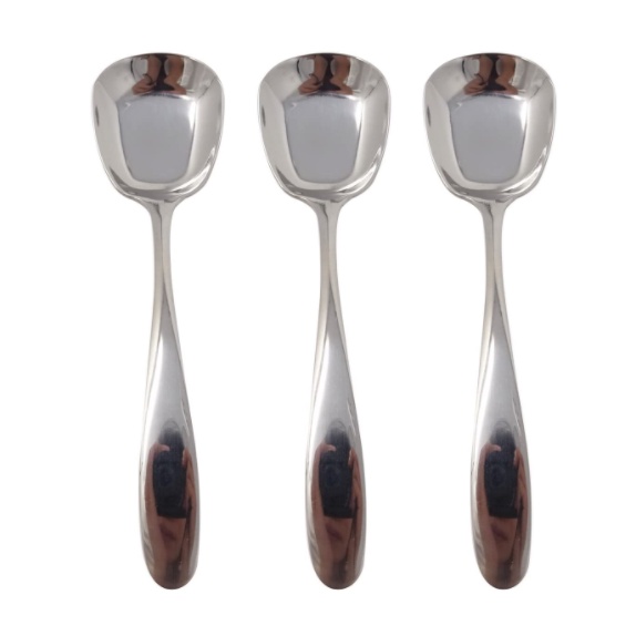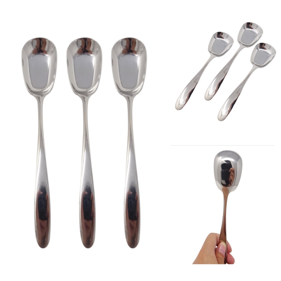 Dining Kitchen Silver Square Serving Spoon Silver Stainless Steel Square Head Flat Bottom Spoon
