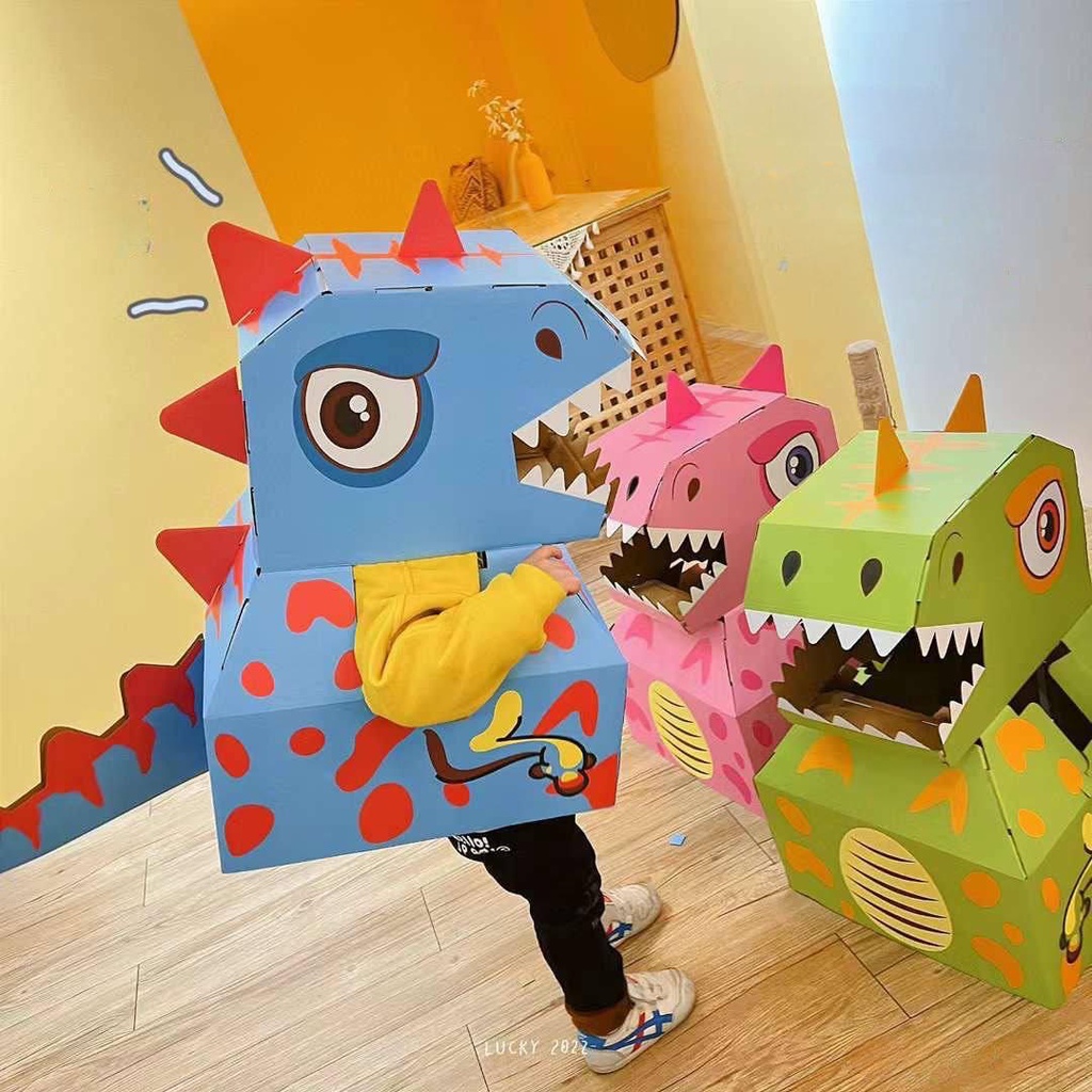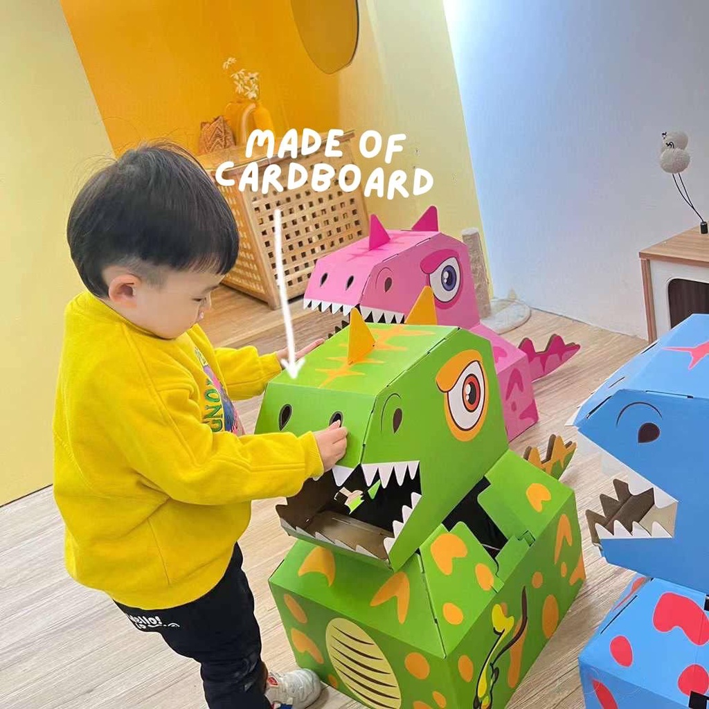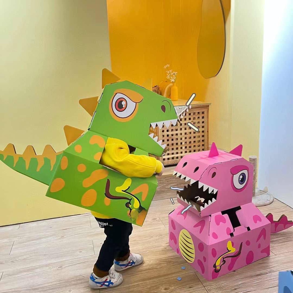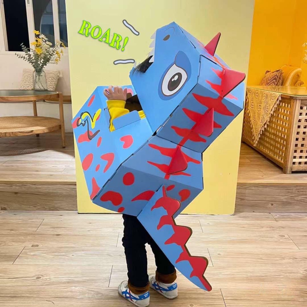 Dinosaur Cardboard Costume T-Rex Jurassic Cosplay Costume for Kids by WISHLAND