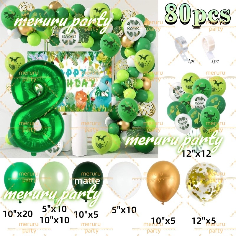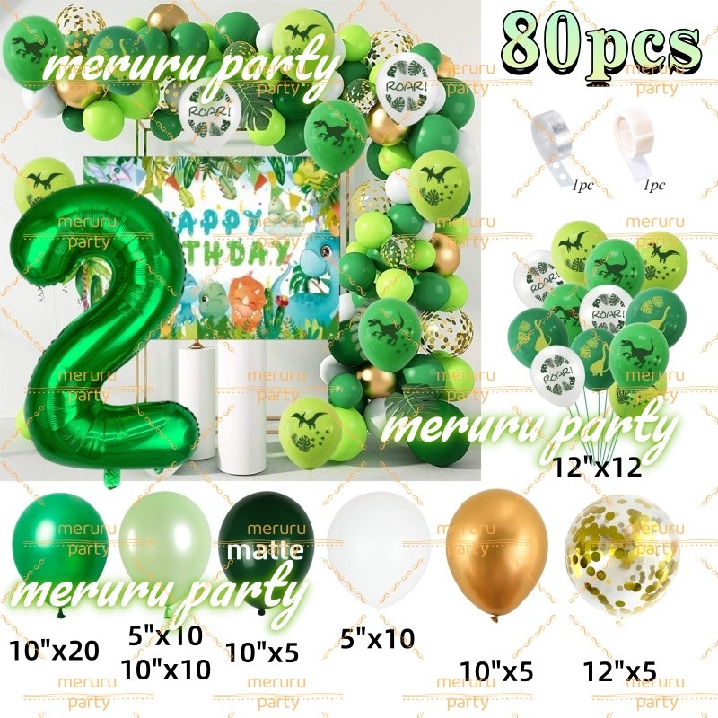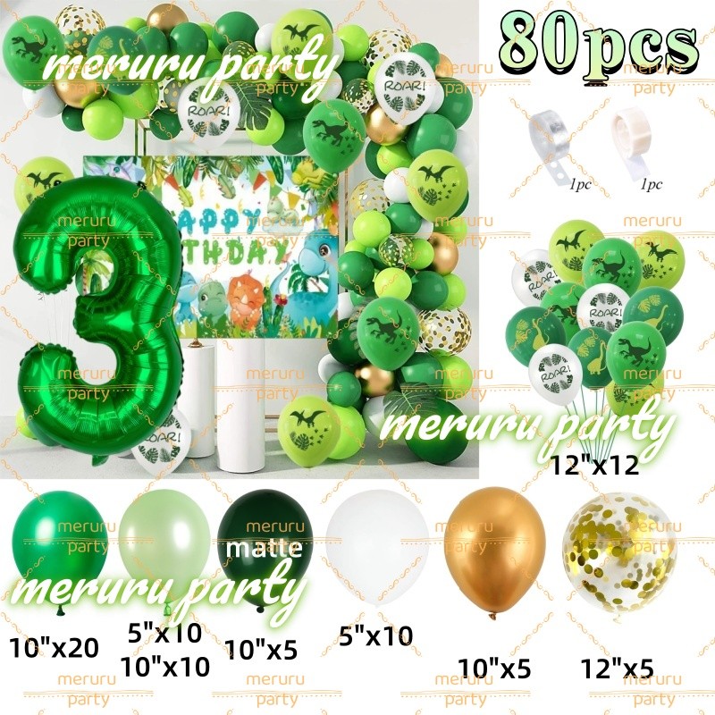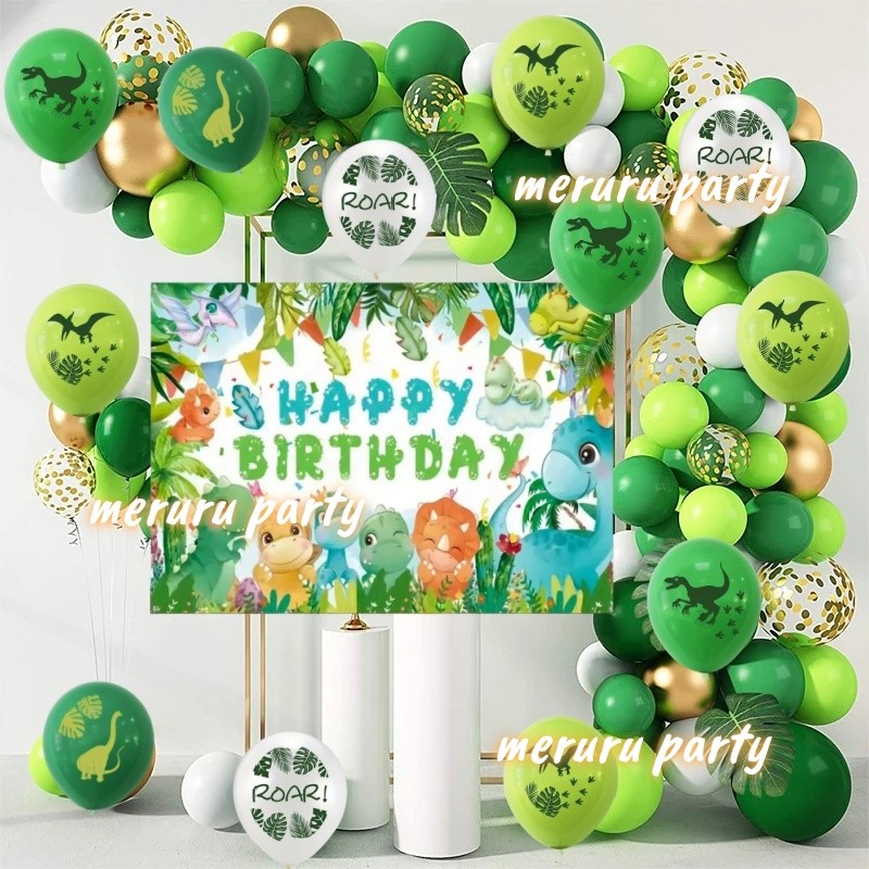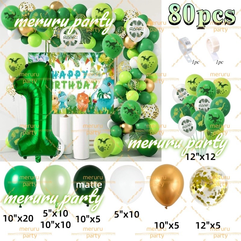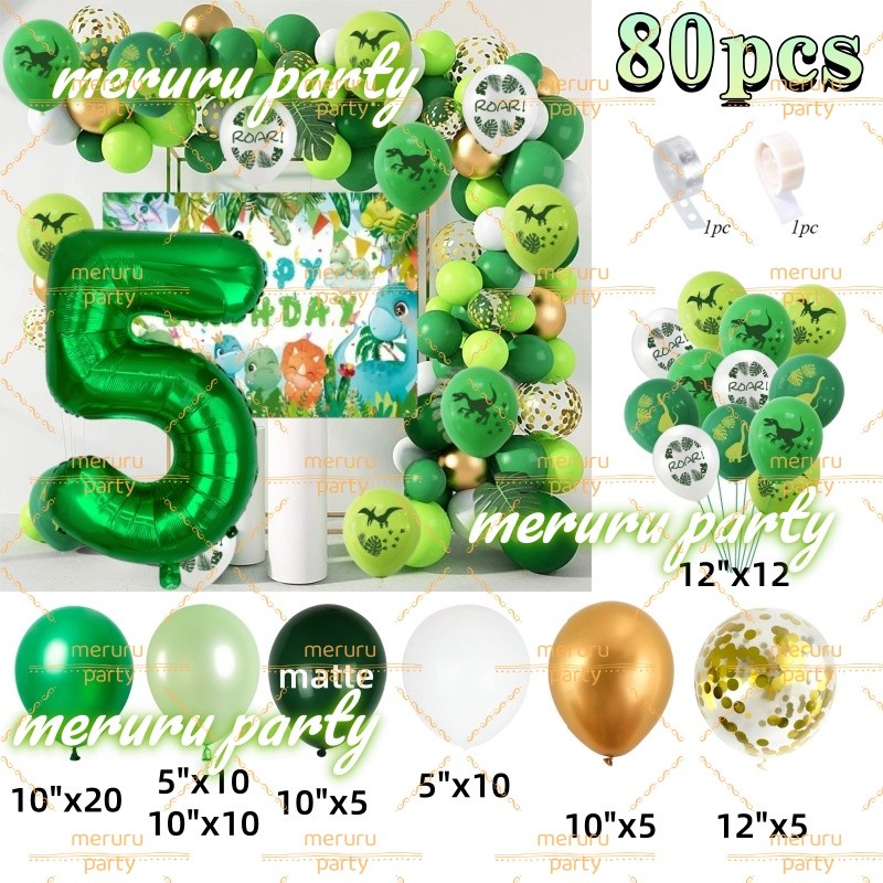 Dinosaur Themed Balloon Garland Arch Kit Green Gold Balloons for Jungle Birthday Party Decorations