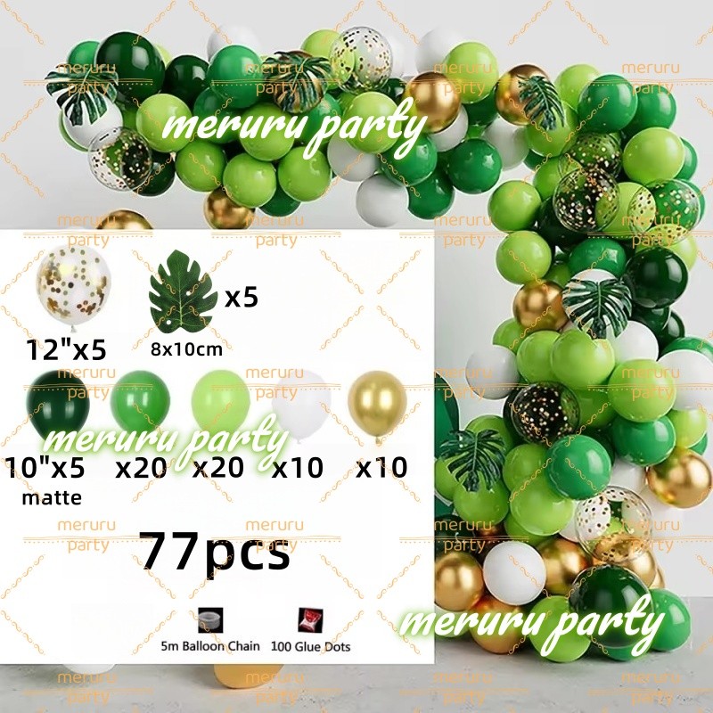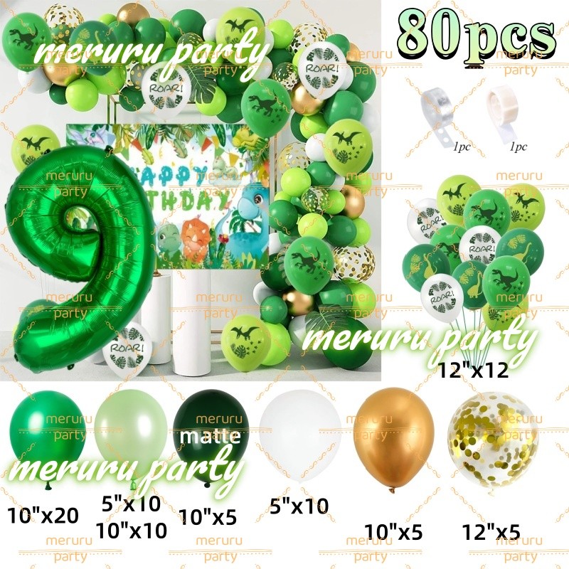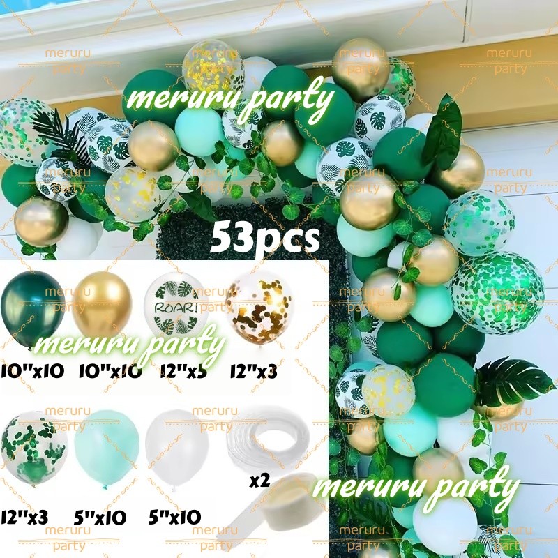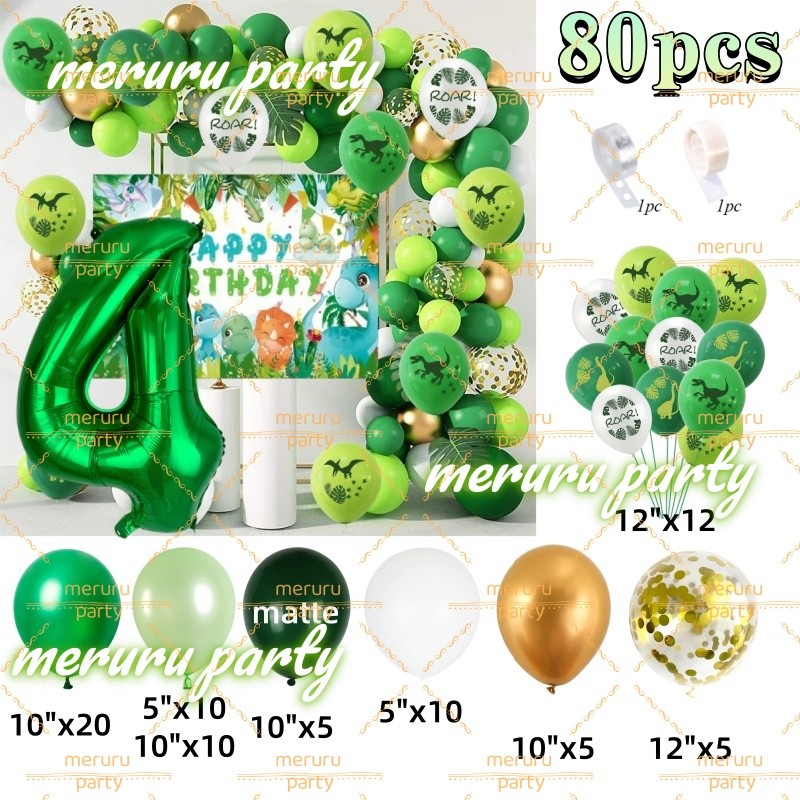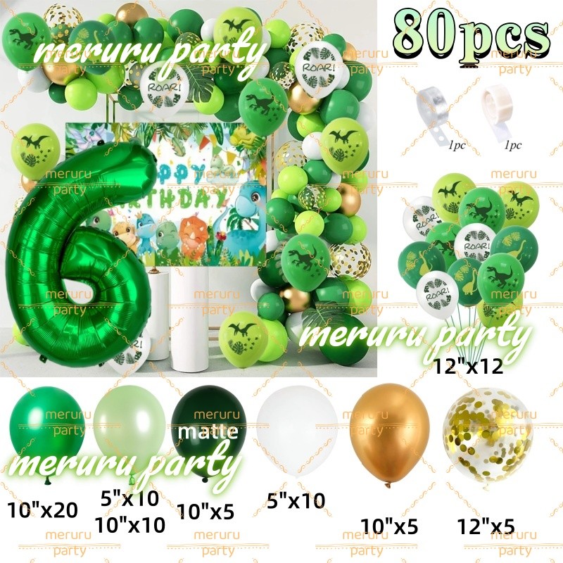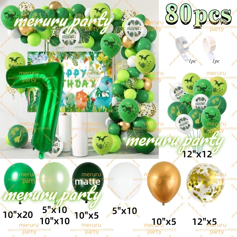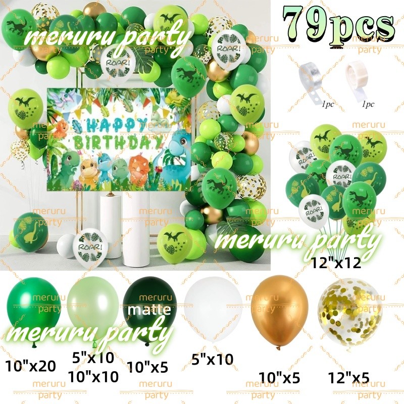 Dinosaur Themed Balloon Garland Arch Kit Green Gold Balloons for Jungle Birthday Party Decorations