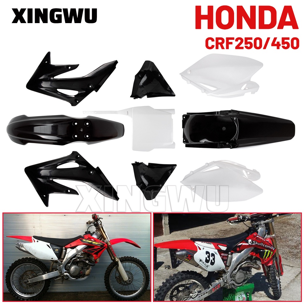 Dirt Pit Bike Body Plastic Kit Fender Radiator Shrouds Fairing For Honda CRF250 CRF450 Number Plate Front/Rear Mudguard Front Side Fender Rear Side Fender Motorcycle Accessories