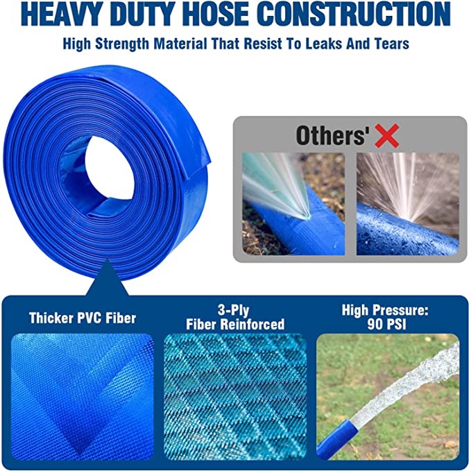 Discharge Duct Flat Hose 2" 3" 4" Inches/Submersible Water Pump Hose PVC Flexible Hose for Water