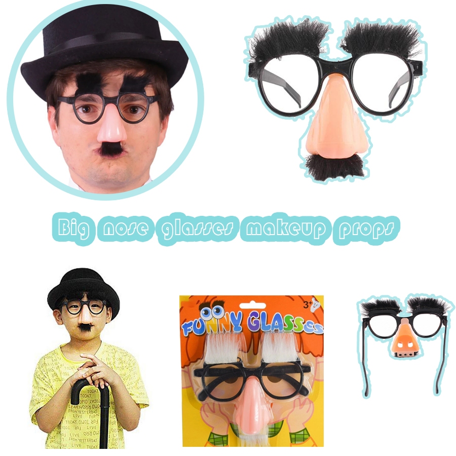 Disguise Glasses Big Nose Glasses with Eyebrows Mustache Silly Funny Photo Props Halloween Party Eyeglasses Novelty luph