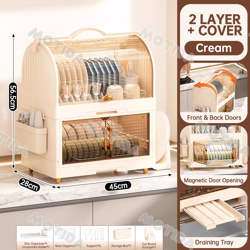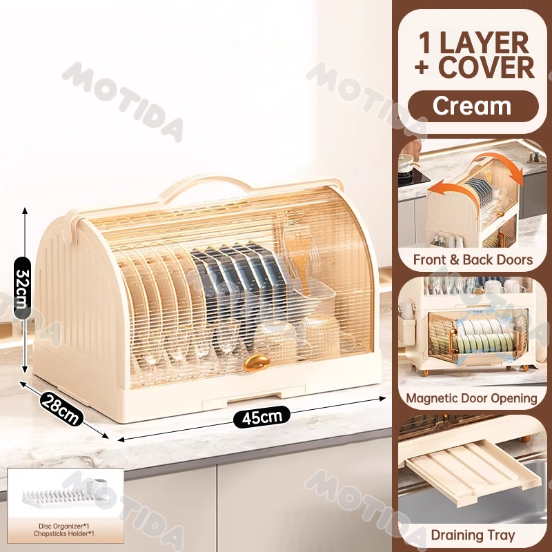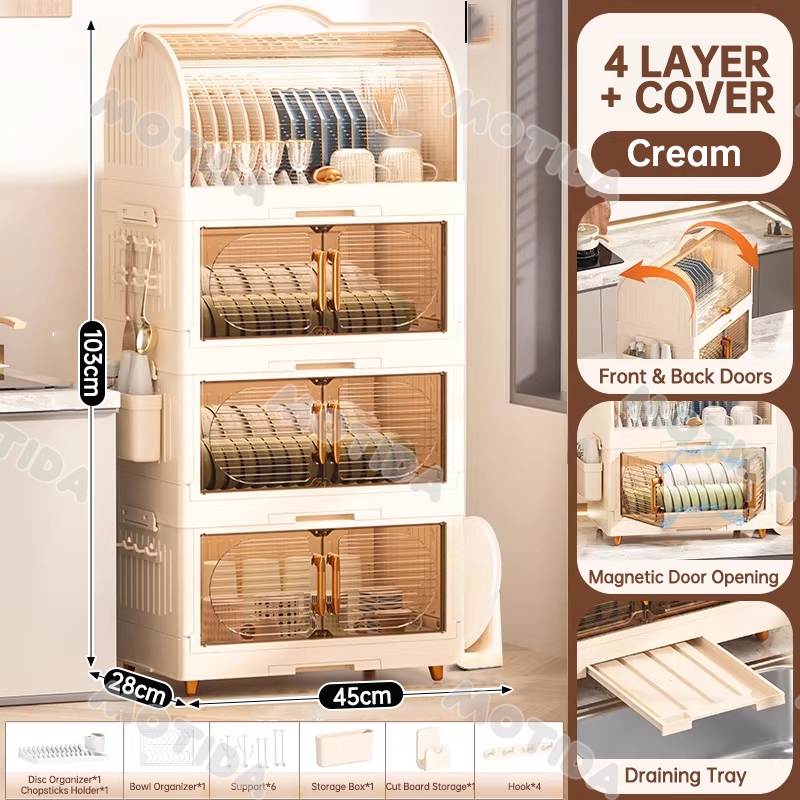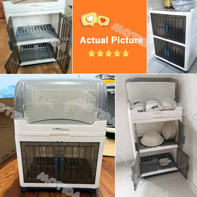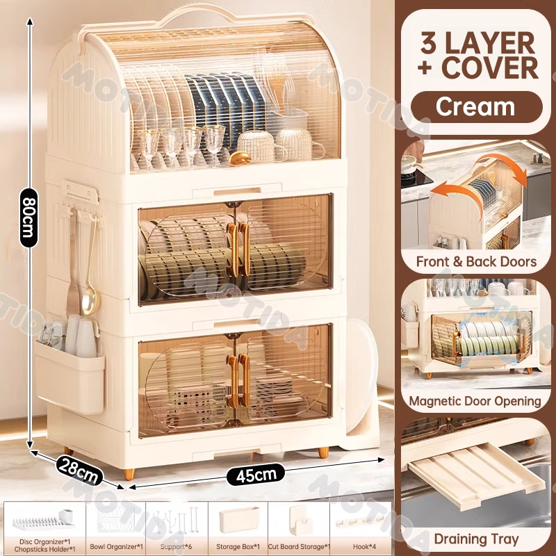 Dish Rack With Cover Foldable Dish Cabinet Drainer Drying Rack Aesthetic With Cover For Plates Bowls