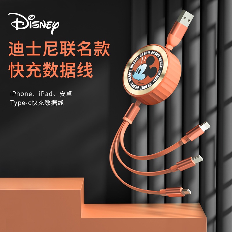 Disney 3 in 1 Car Data Cable Charger Fast Charging USB To Type C Micro USB Flash Charging Data Cable Mickey Mouse