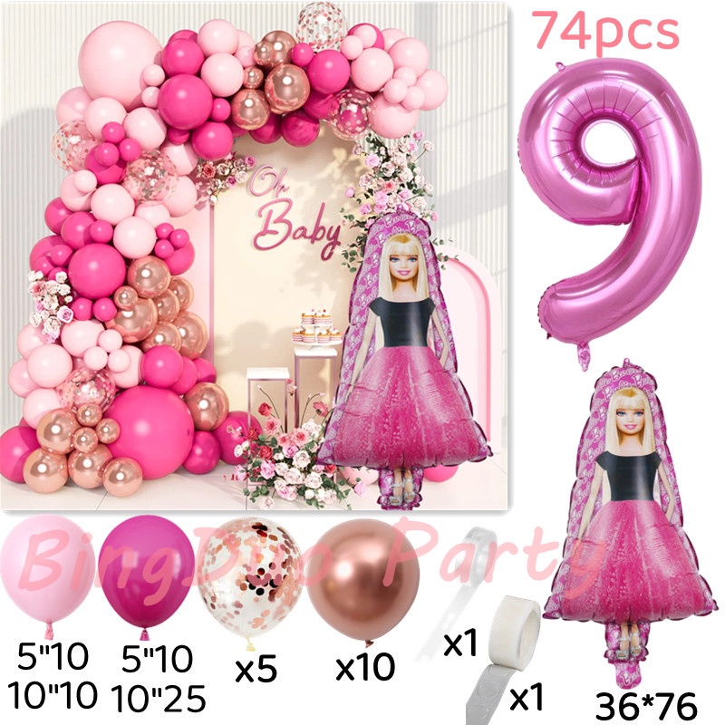 Disney Barbie Theme Balloons Garland Arch Kit 32inch Pink Number Confetti Balloon Barbei Foil Balloon Party Decorations