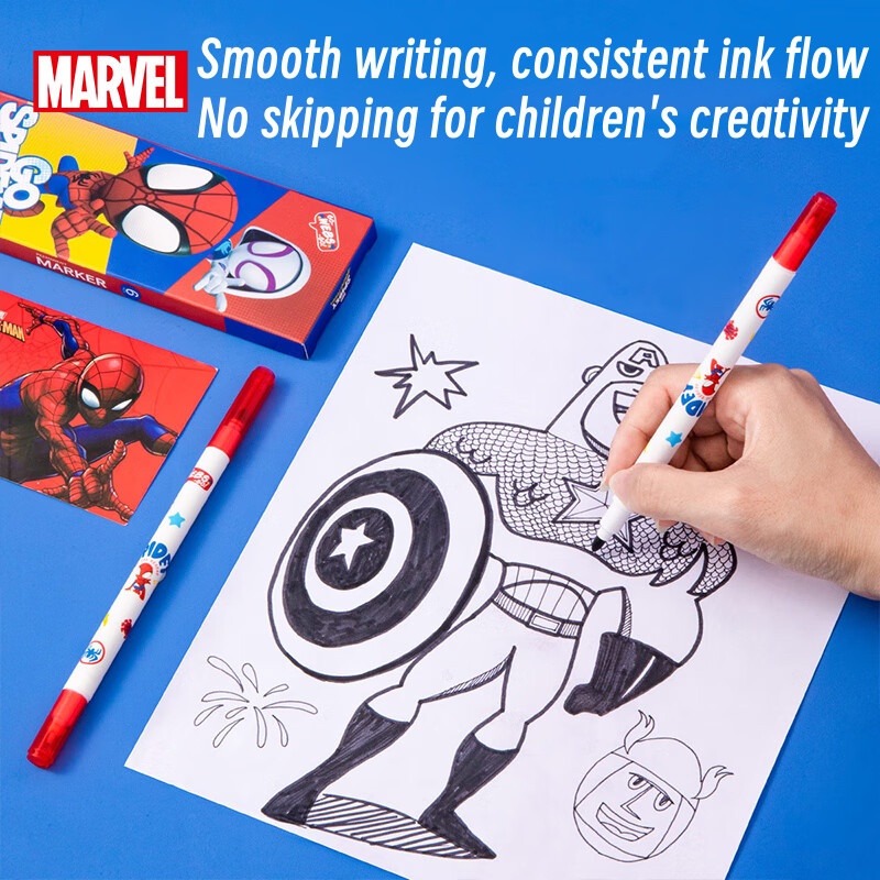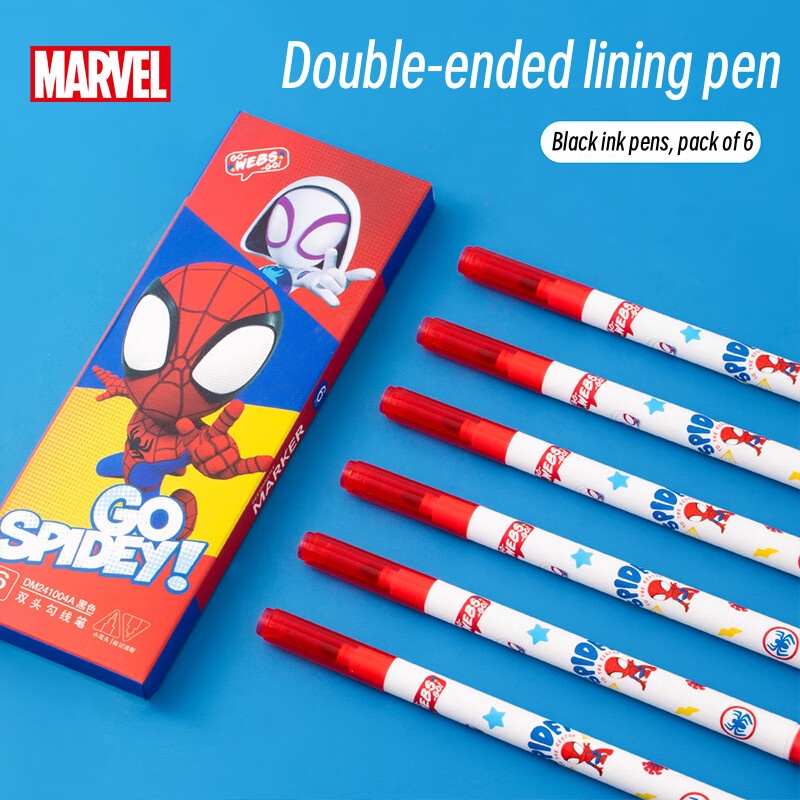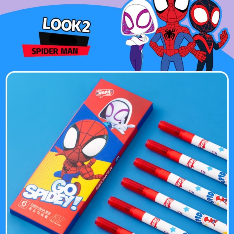 Disney Black Dual-Tip Markers, Marvel Spider Man, 6-Pack
