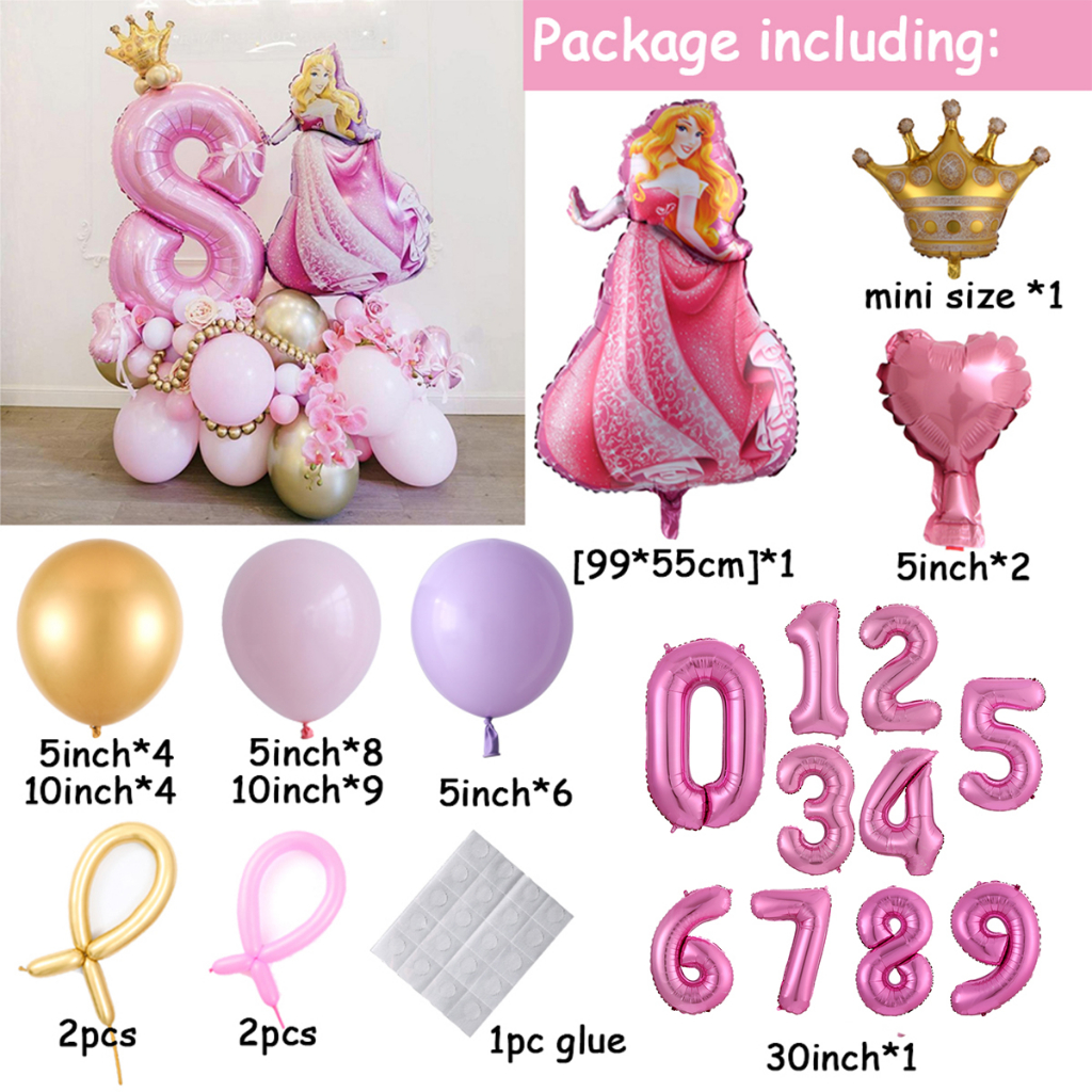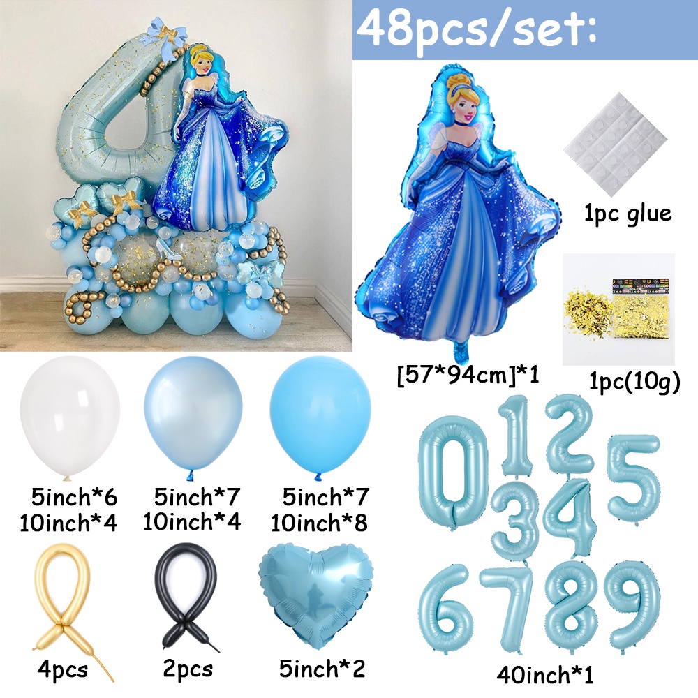 Disney Cinderella Princess Balloon Set 40inch Pearl Blue Number Foil Balloons Kids 1st Birthday Party Baby Shower Decorations