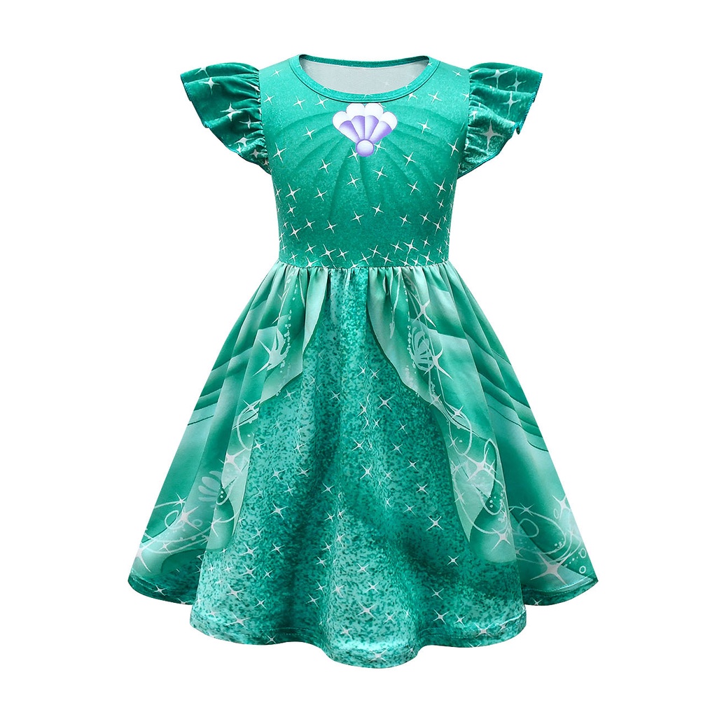 Disney Girl Princess Little Mermaid Ariel Dresses Kids Milk Silk Charm Children Carnival Birthday Party Clothes Summer Dress Girls