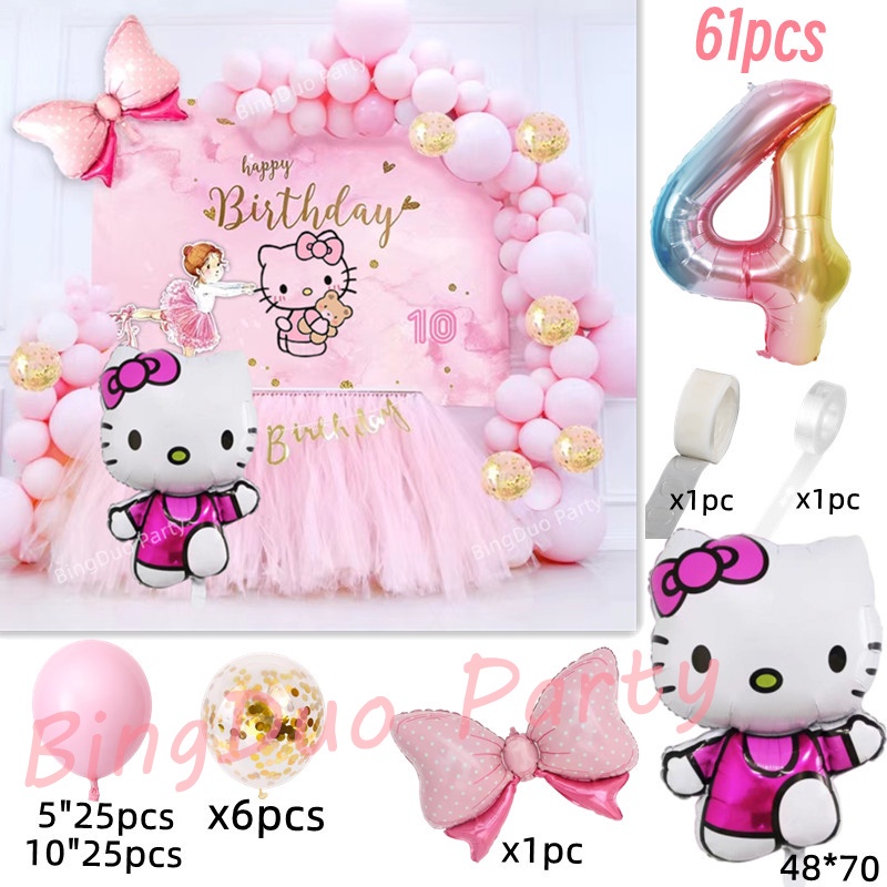 Disney Hello Kitty Garland Arch Kit Pink Kitty Foil Balloon 32inch Gradient Number Pink Bow Confetti Balloon Party Needs
