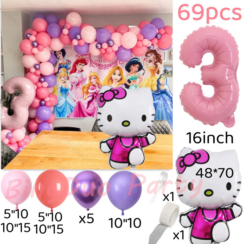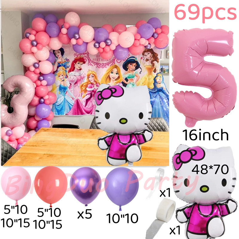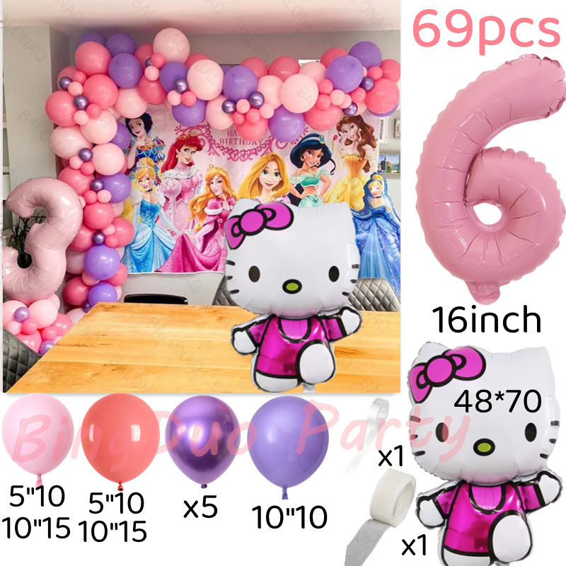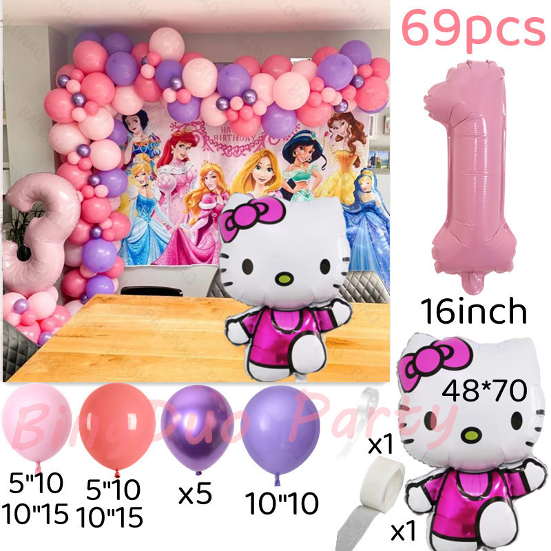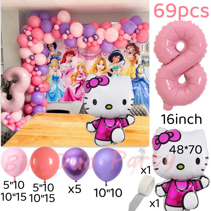 Disney Hello Kitty Party Needs Balloons Set Macarone Latex Balloon 16inch Candy Pink Number Girls Birthday Party Supplies