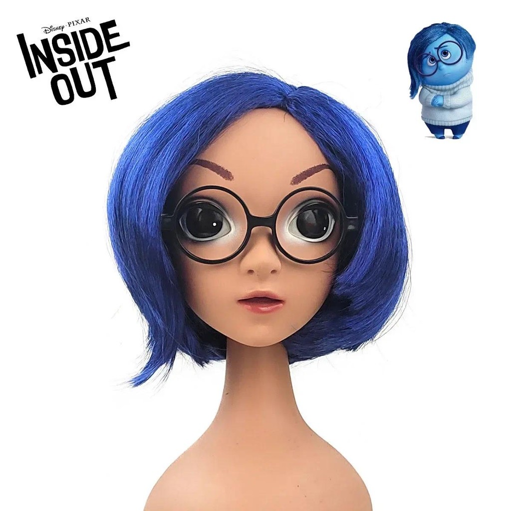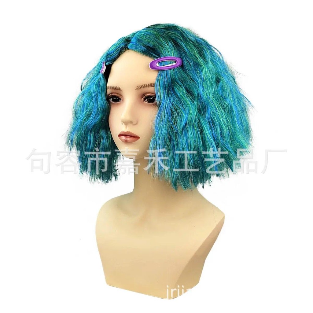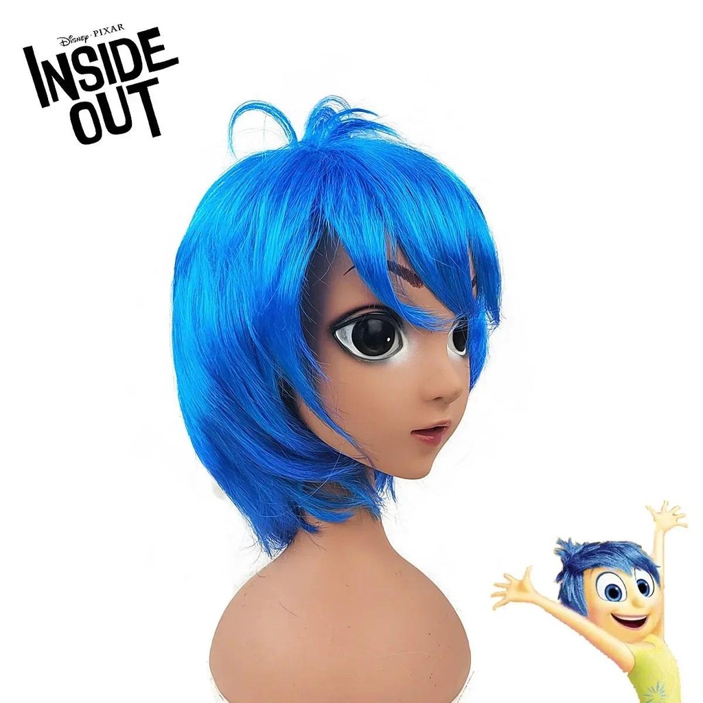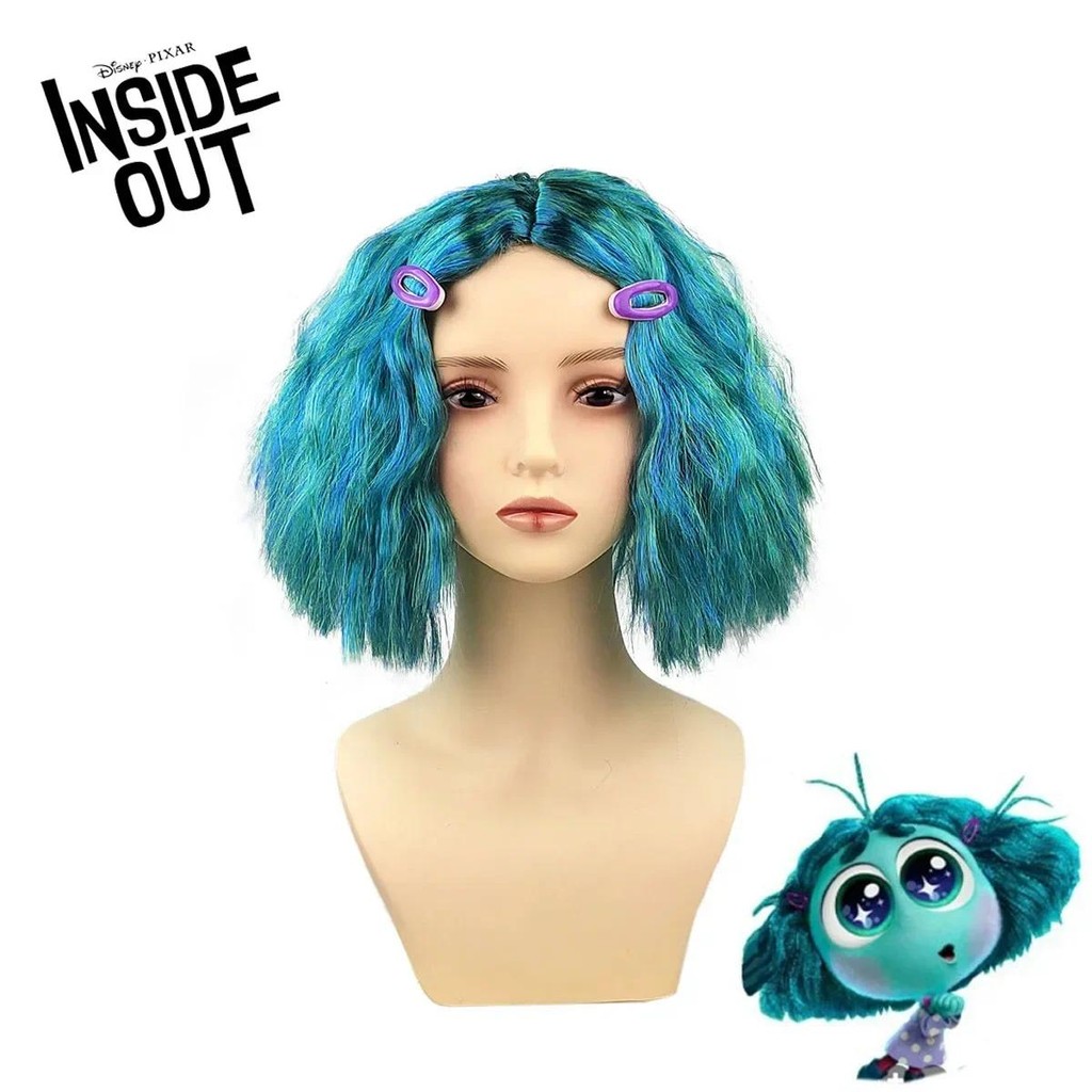 Disney Inside Out 2 Envy Short Blue Curly Heat Hairpiece Joy Wig Disgust Sadness