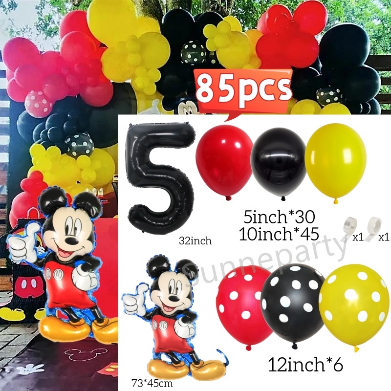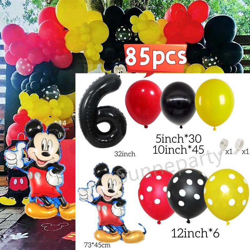 Disney Mickey Mouse Balloo 32inch Black Number Balloon Garland 1-9th Birthday Party Decorations Kids Toys Party Needs