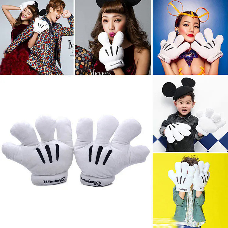 Disney Mickey Mouse Plush Gloves Winter Warm Cosplay Mickey Mouse White Gloves Performance Toys Birthday Christmas Gifts