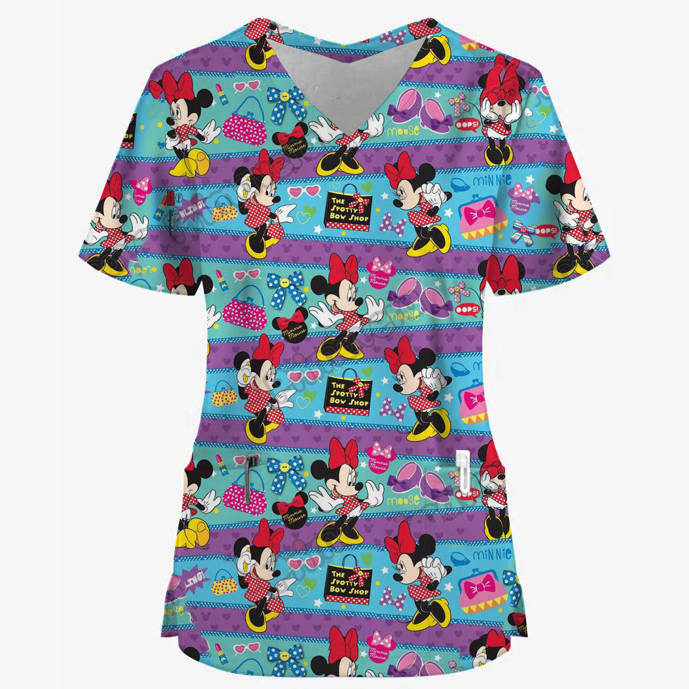 Disney Mickey Mouse Print Nurse Uniform Cute Minnie 3D Print V-Neck Pocket Medical Uniforms cartoon Nursing Scrubs Uniforme