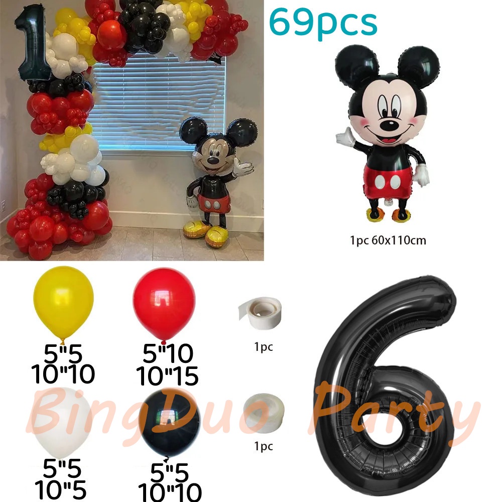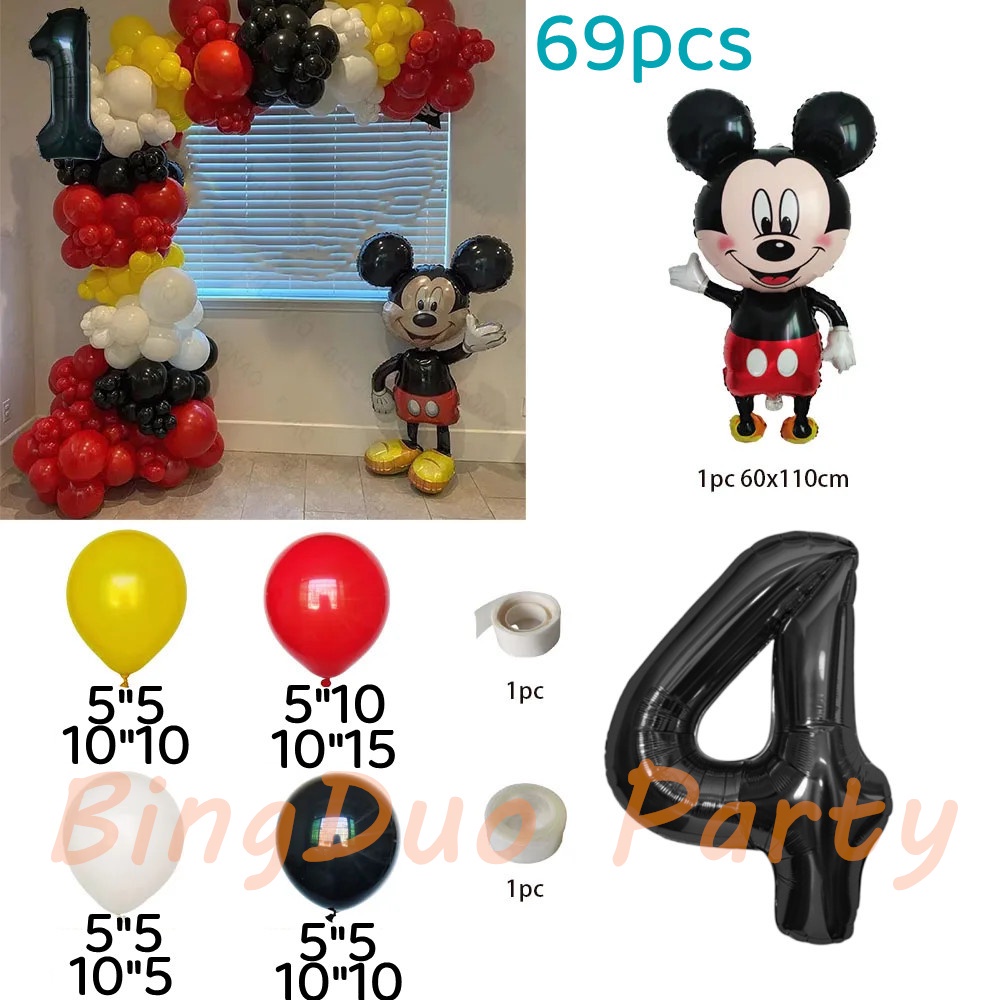 Disney Mickey Mouse Theme Balloons Set 110cm Mickey Foil Balloon 32inch Black Number Baby Shower Birthday Party Needs