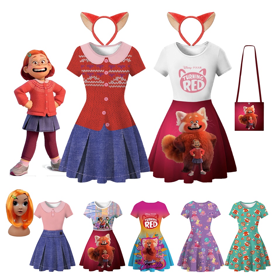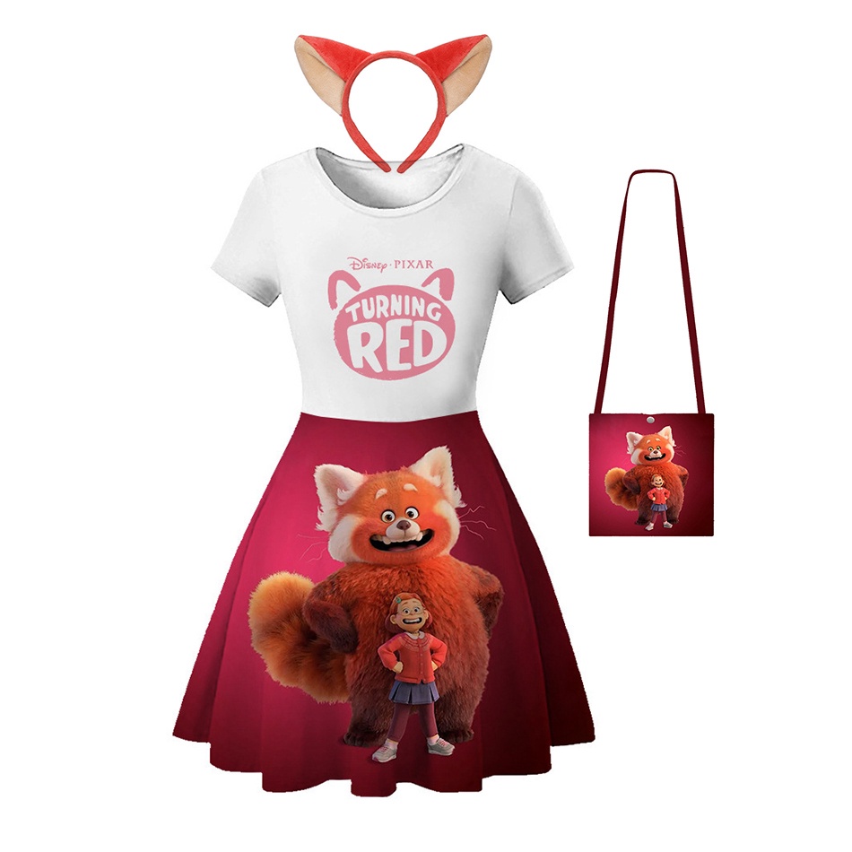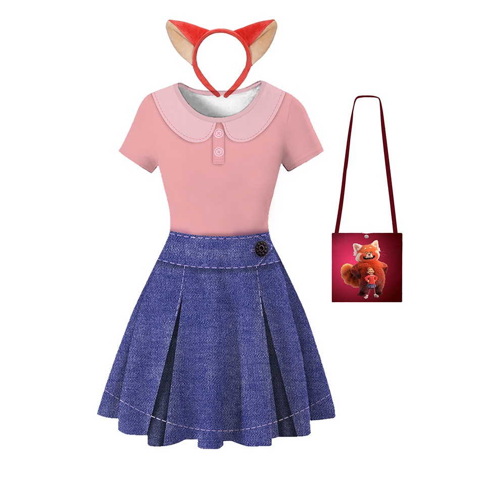Disney Movie Turning Red Costume Kids Birthday Carnival Party Cosplay Outfits Girls Mei Red Panda Be