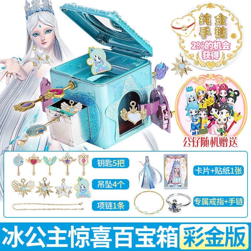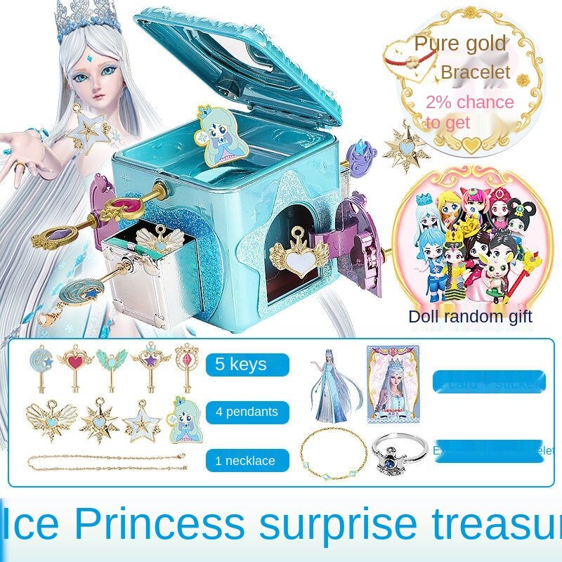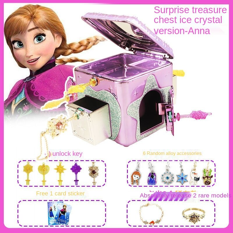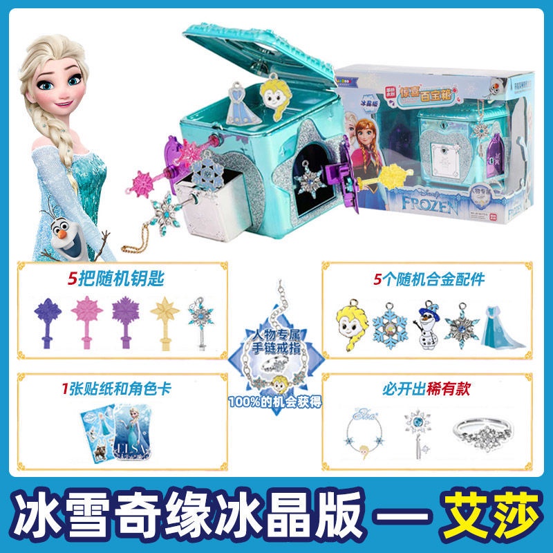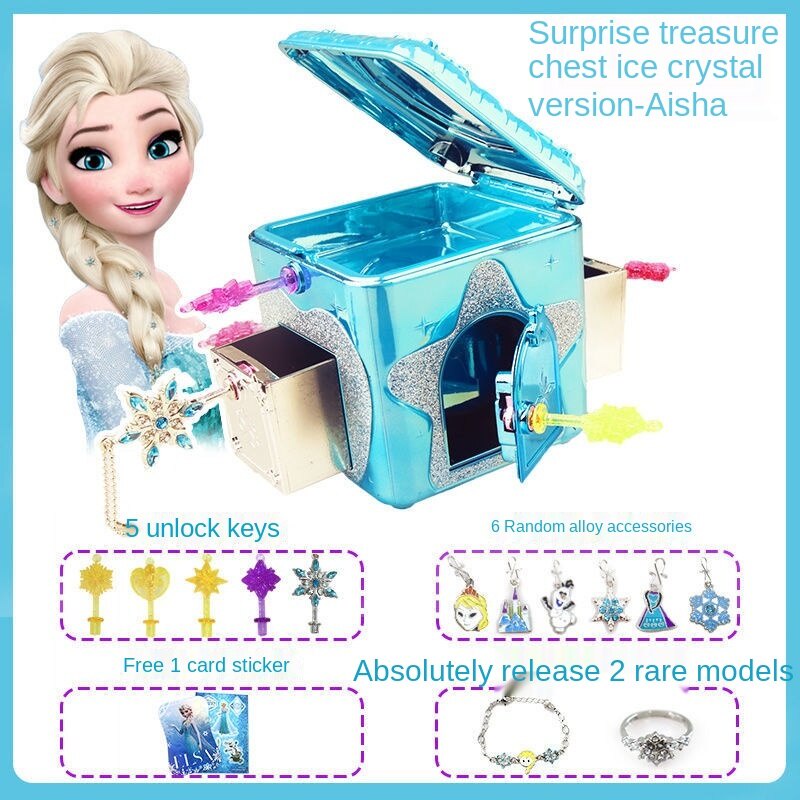 Disney Princess Elsa Surprise Treasure box Frozen Children's Jewelry Box Girl Queen Aisha necklace Ye Luoli Toy 6-7-9Years Old girls gift