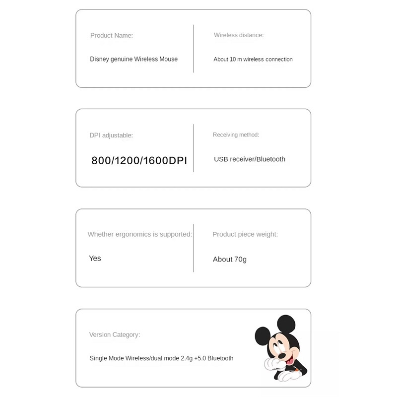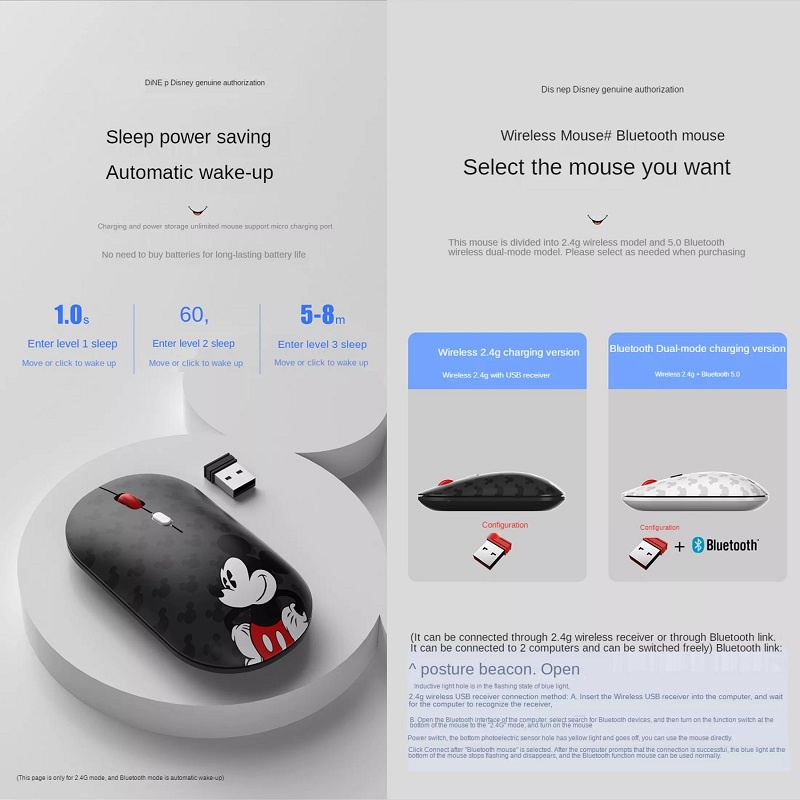 Disney Wireless Bluetooth Mouse Wireless Bluetooth USB 2.4G Mouse for PC Laptop Computer Office Mouses 1600 DPI Mickey Mouse Donald Duck Mute Mouse