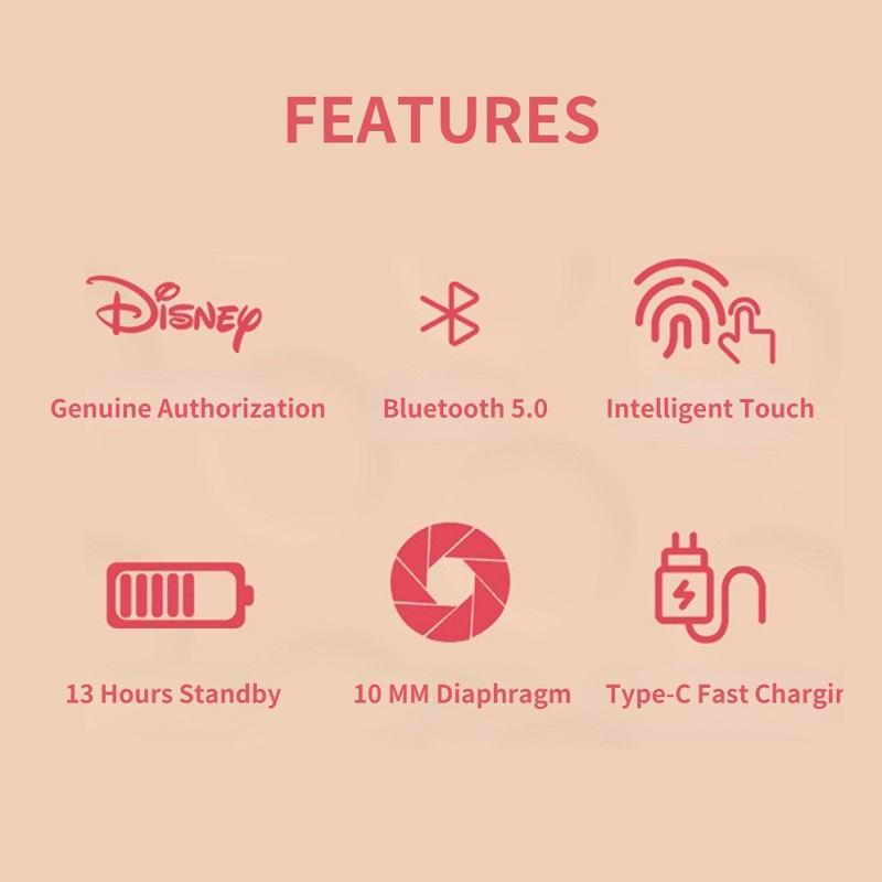 Disney Wireless Bluetooth Noise Cancelling Gaming Earbuds Headphones HiFi Earbud Earphones Earpiece Mickey Minnie Mouse Earphone Original Headset TWS Headphone with Microphone Mic
