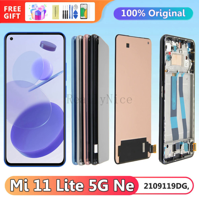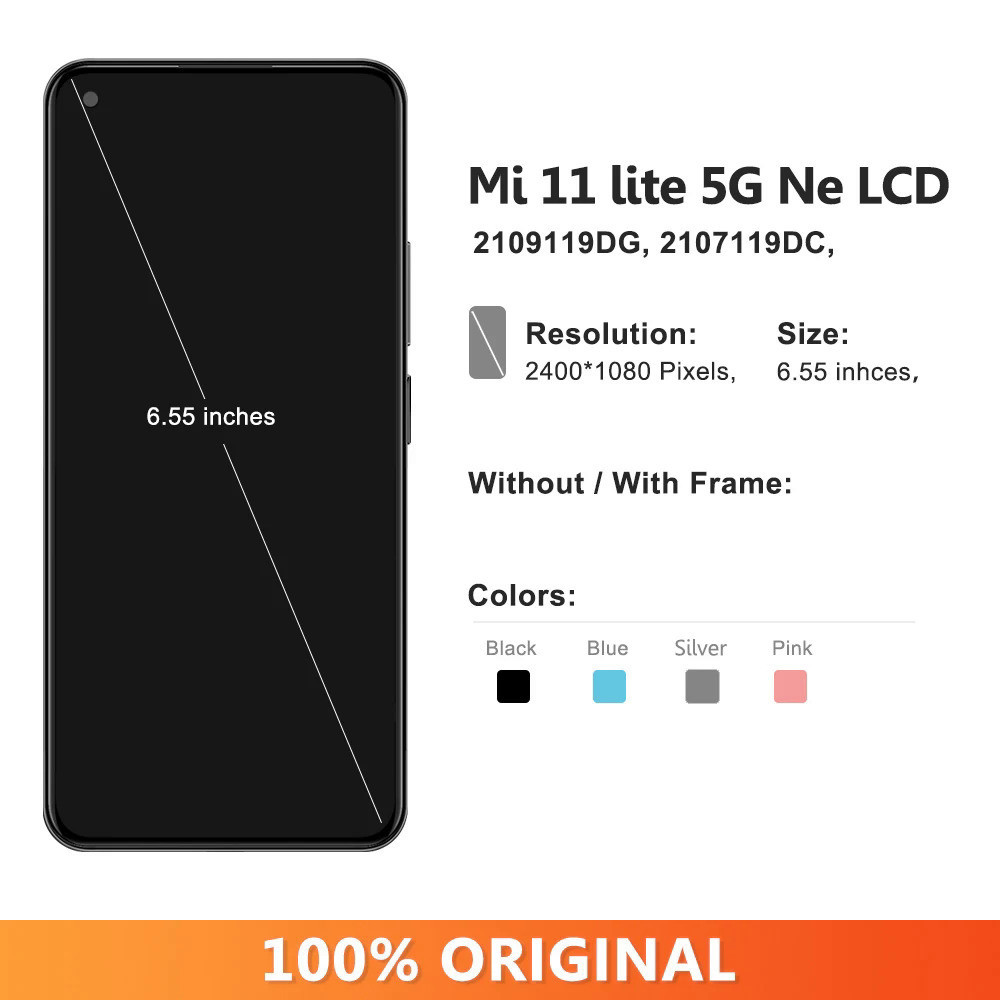 Display Screen for Xiaomi 11 Lite 5G NE 2109119DG, Lcd Display Digital Touch Screen with Frame for Mi 11 Lite 5G NE Replacment
