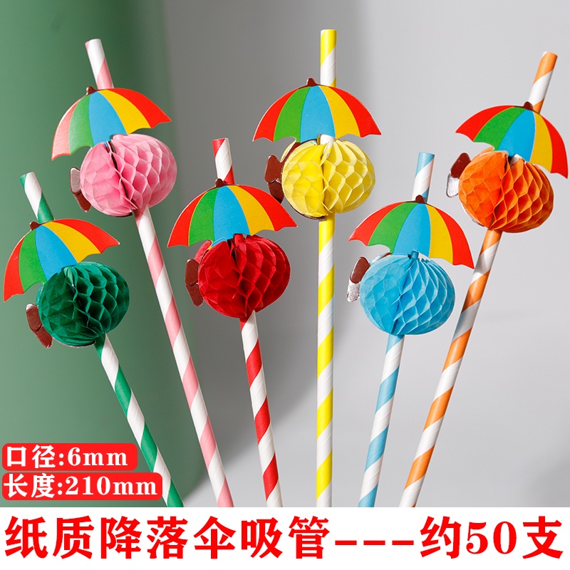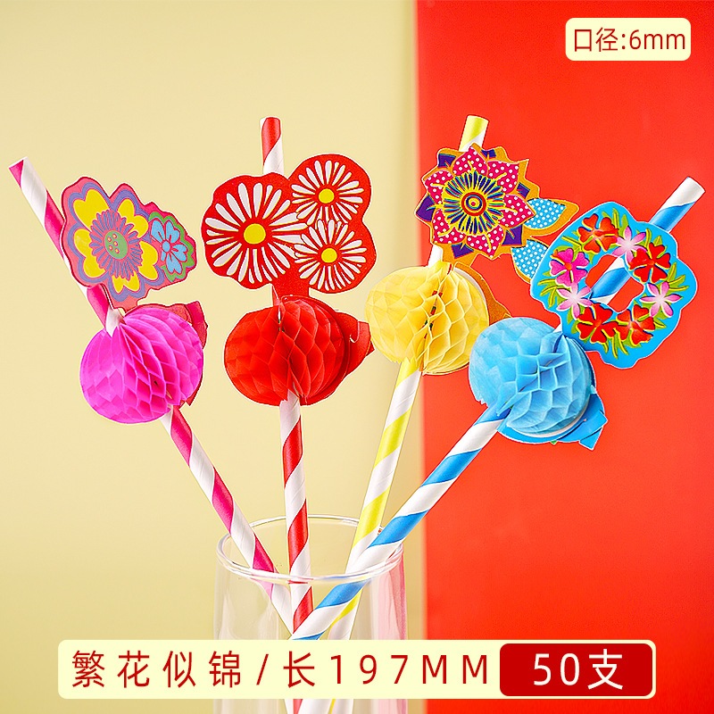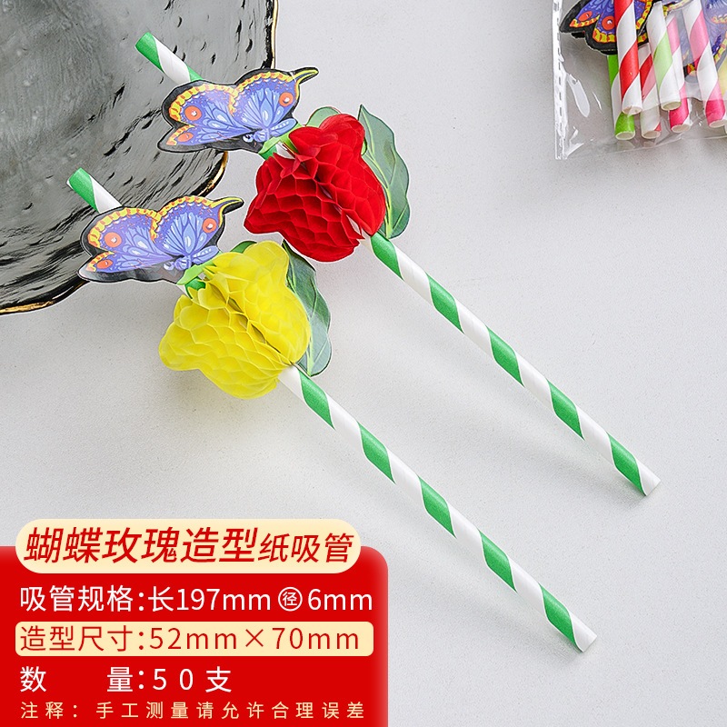 Disposable Paper Straws Holiday Dress Up Party Dessert Juice Drink Creative Modeling Handmade Decorative Straws 50 Pieces