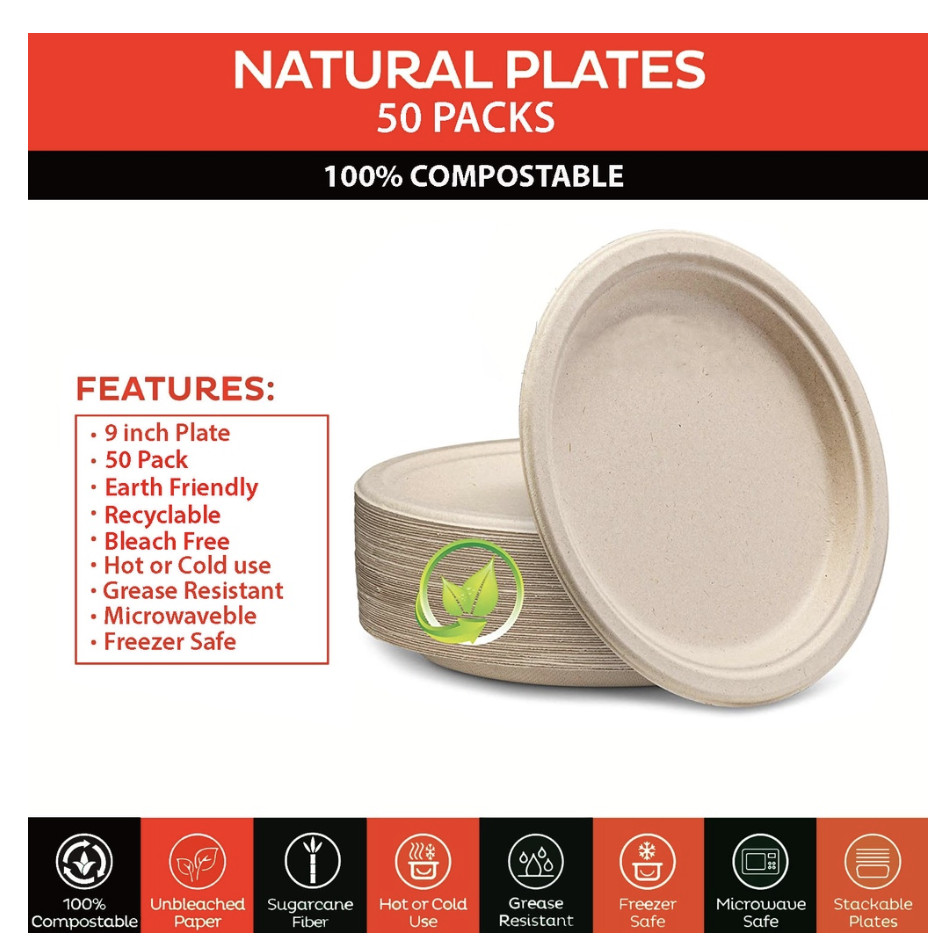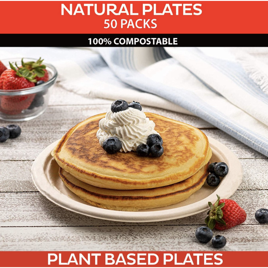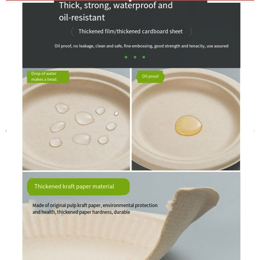 Disposable Plate 9-10" Extra Strong, Extra Thick Microwave Safe Paper Plate Cut Oil Resistant 50pcs