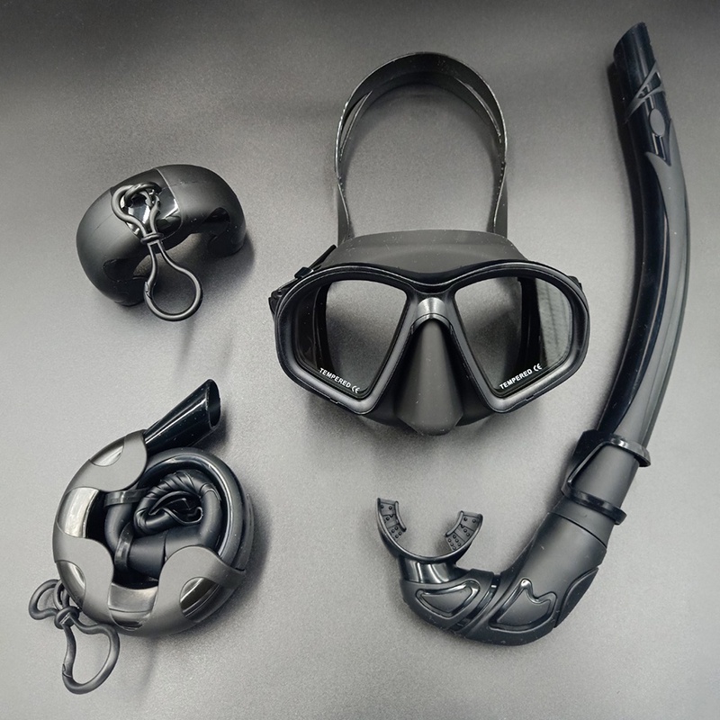 DiveShark Dazzle lens Tempered Glass Low Volume Freediving Mask With Foldable Snorkel J-type