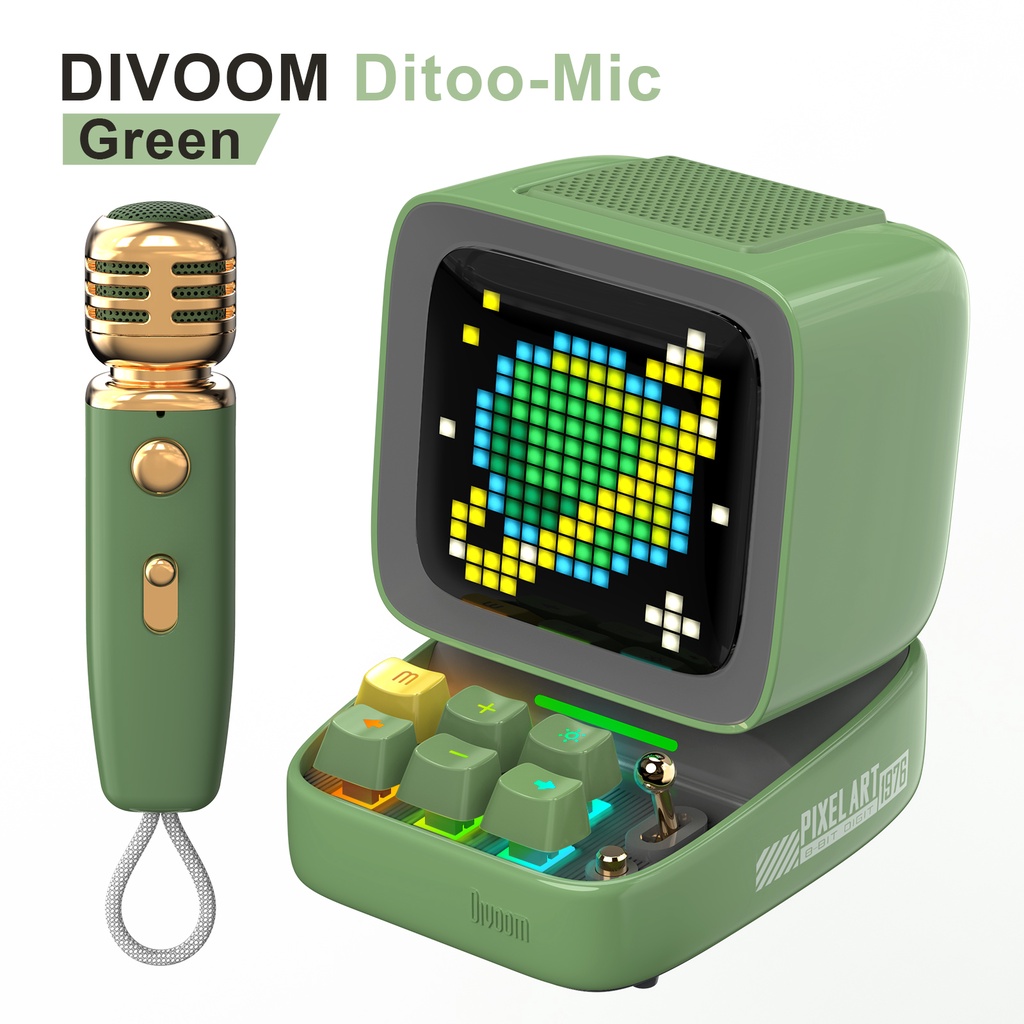Divoom Ditoo-Mic Pixel Art Portable Bluetooth Speaker for PC with Wireless Karaoke Microphone, Bluet