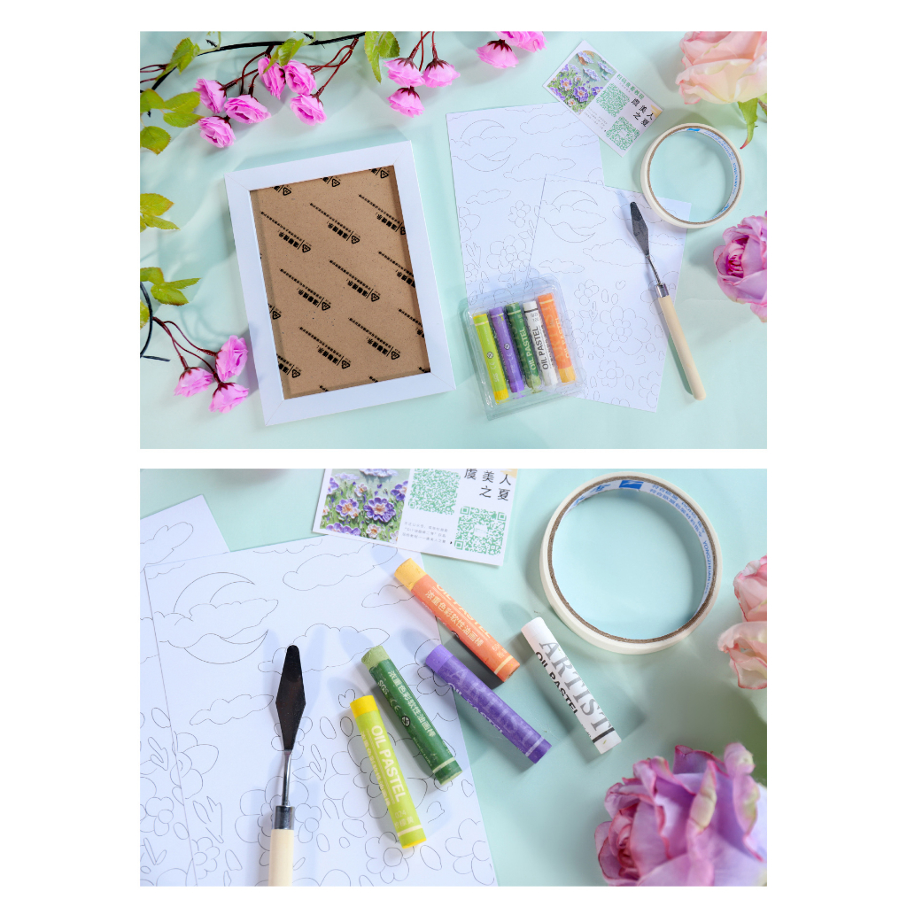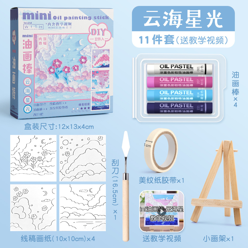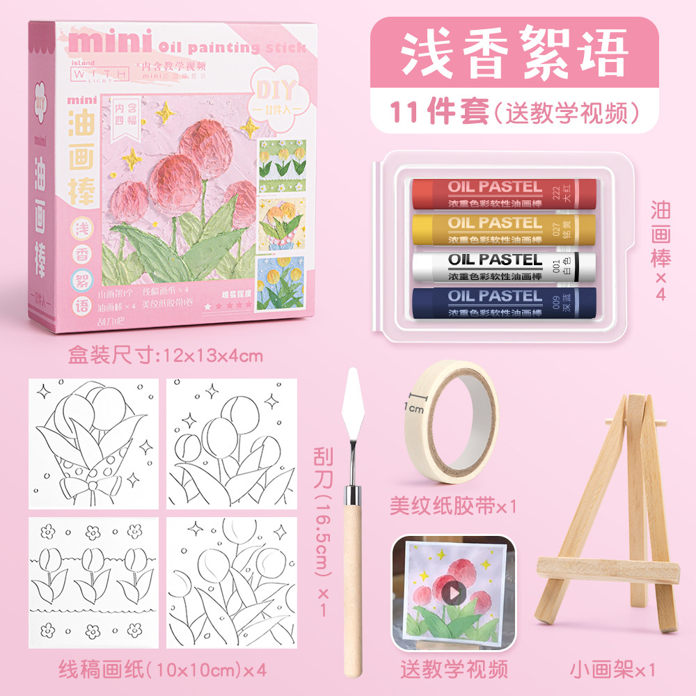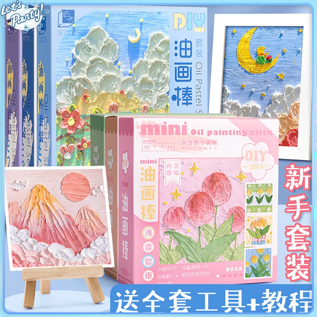 Diy Oil Pastel Painting Set Mini Oil Painting Stick Drawing Paper Scraper Gift Crayons Education Toy
