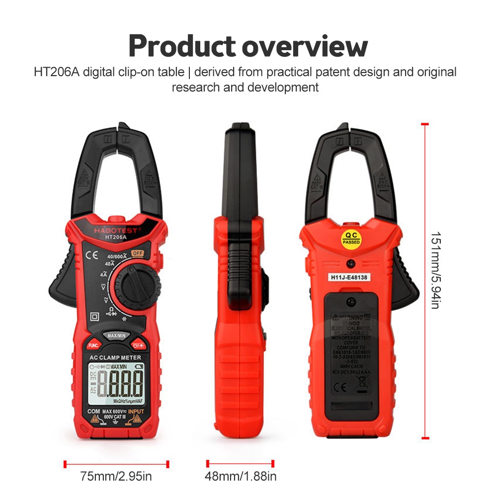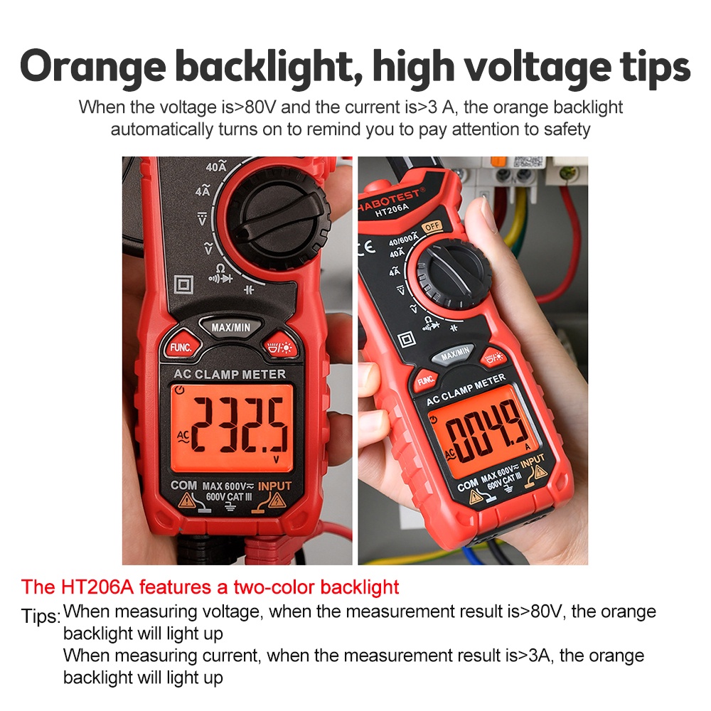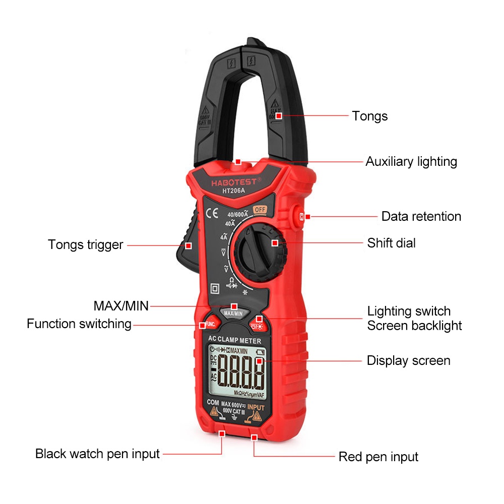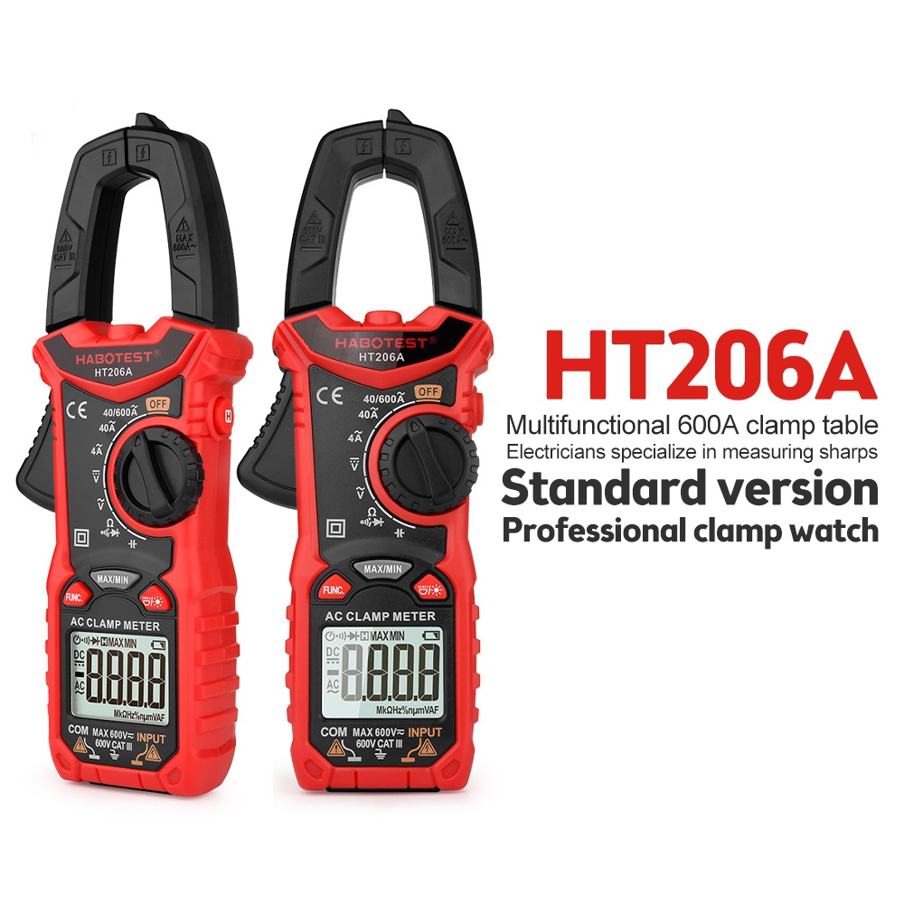 DiyStudio HT206 Digital Clamp Meter TRMS 6000 Counting 600A Digital Multimeter High Accuracy AC-DC Digital Display Universal Meter Clamp Meter