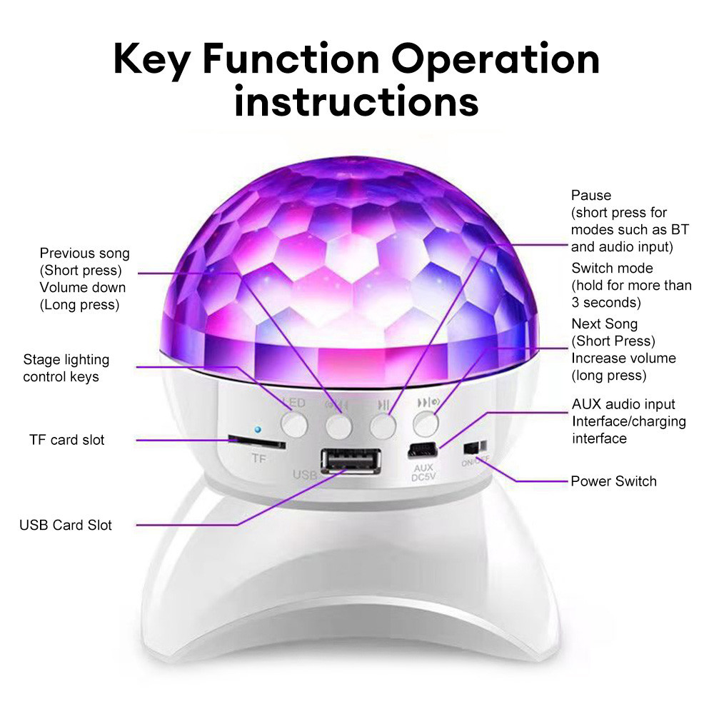 Dj Speakers Disco Ball Wireless Bluetooth Music Rotating Stage Light RGB Strobe Laser Projector Rechargeable Party Light
