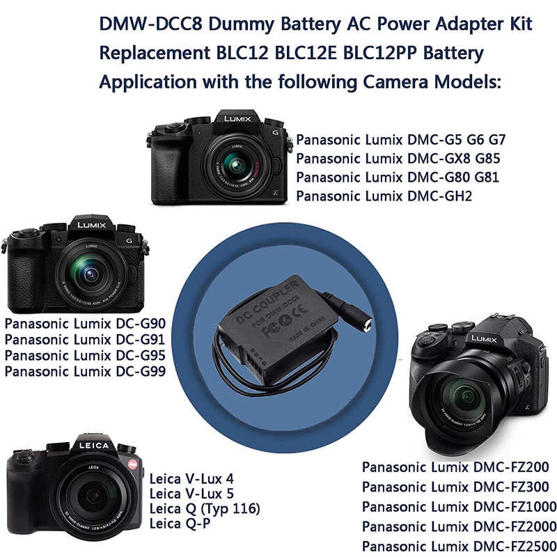 Dmw-Dcc8 DC Coupler Adapter Ac10 USB AC Para Sa Panasonic Lumix Dmc-G5 G6 G7 Gx8 G80 G85 Gh2 Fz300
