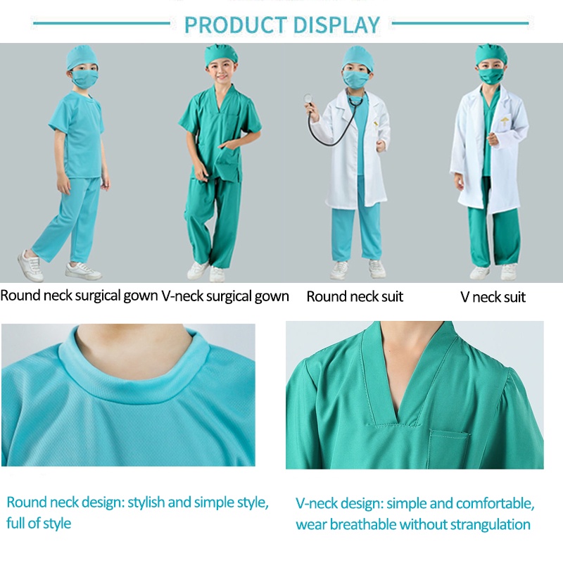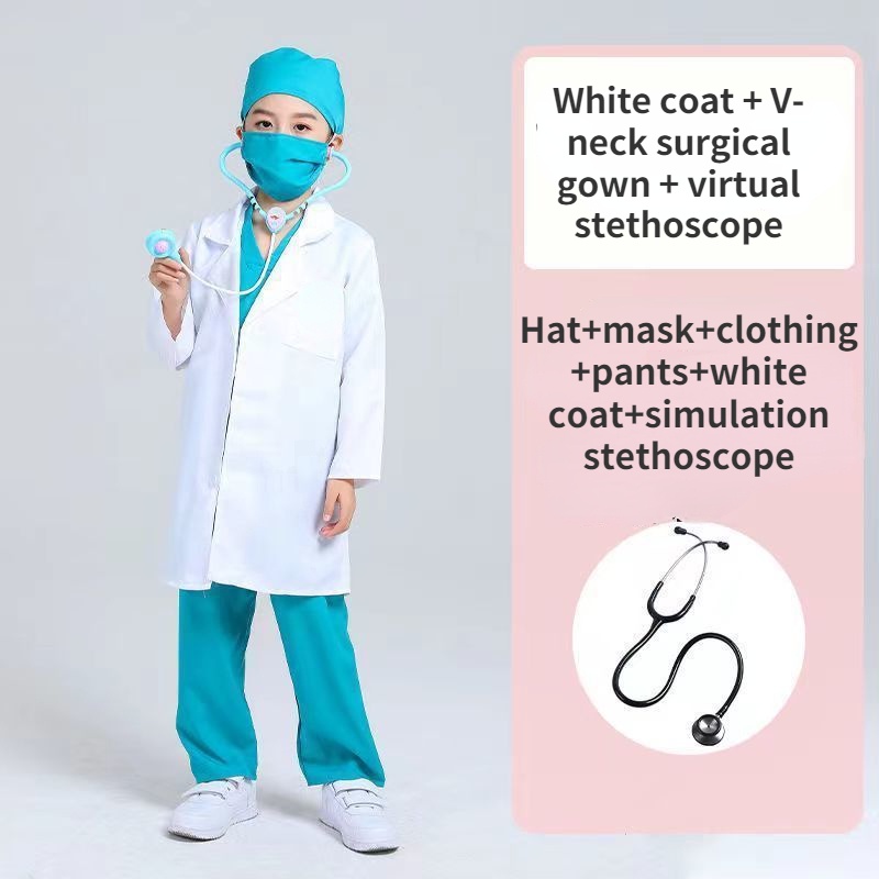 Doctor Career Costume for Kids Girl/Boy Surgeon Outfit Halloween Cosplay Children Party Dress Up