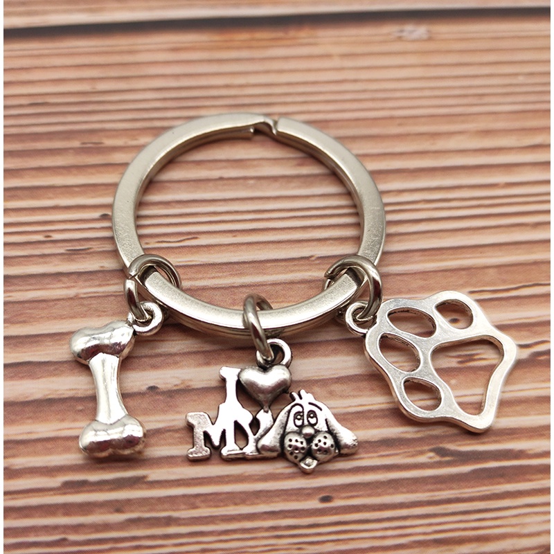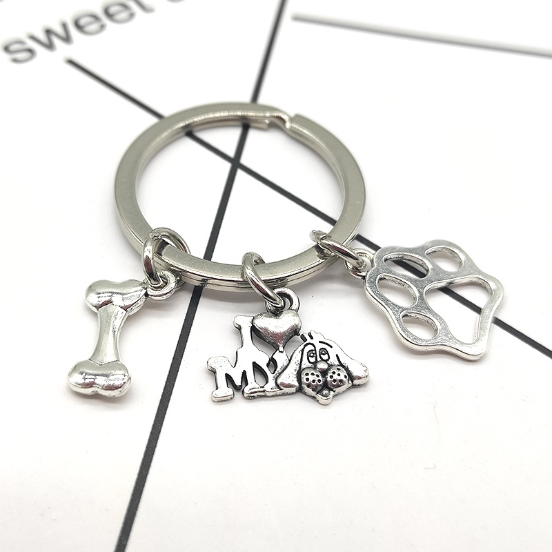 Dog Bone keychain Mini Footprint Pendant Keyring Paw Key Chain Hangle Motorbike Vintage Jewelry