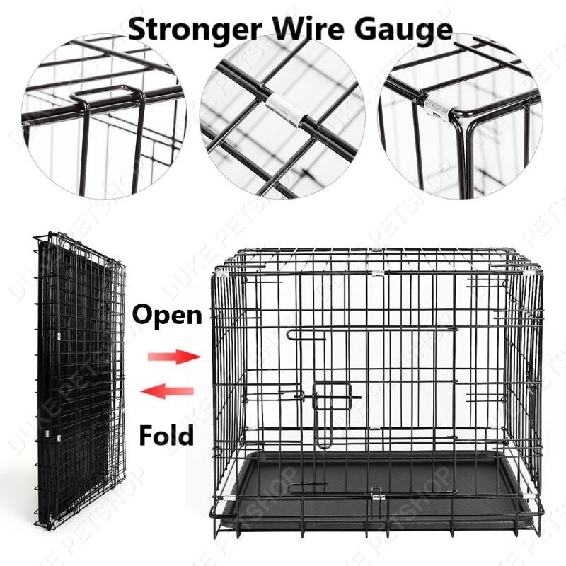 Dog Cage with Poop Heavy Duty Pet Cages Dog Cat Foldable M L Poop Tray