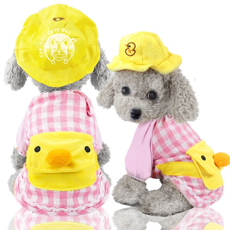 Dog Kindergarten Costume w/ Hat Cat Cosplay Clothes Yellow Cute Duck Pet Apparel Clothing Chihuahua