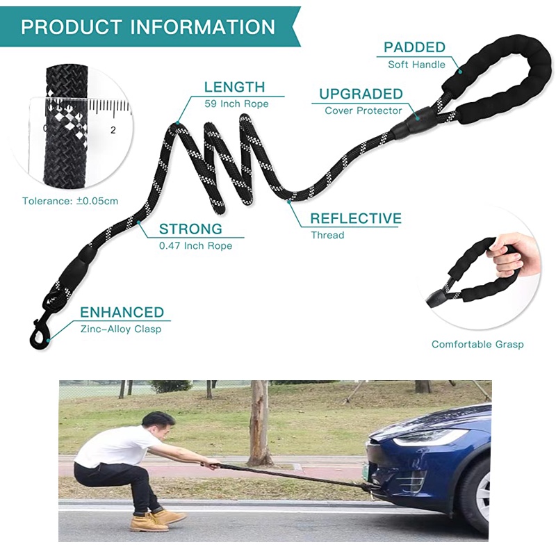 Dog Leash and Collar Heavy Duty Dog Harness and Leash Dog Leash Padded Handle and Highly Reflective