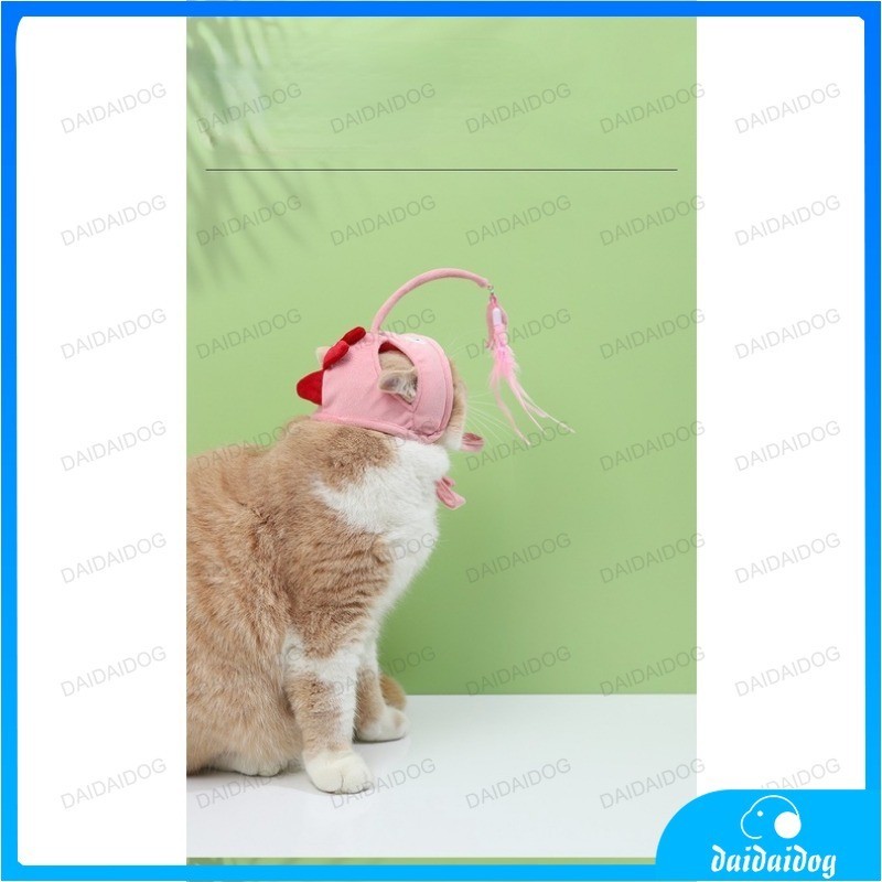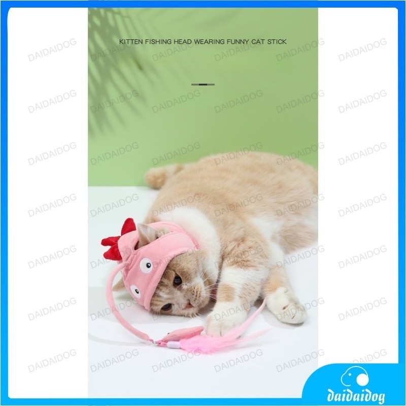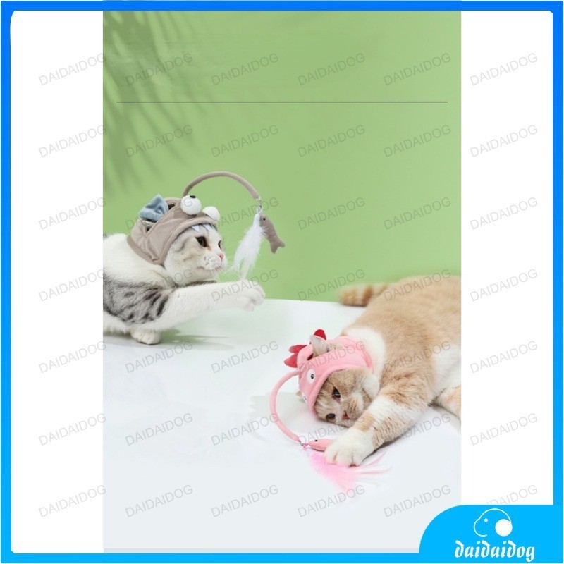 Dogs and cats head wear feathers tease cat stick small dinosaur cat head cover fun gray big eye fish cat self-help toys
