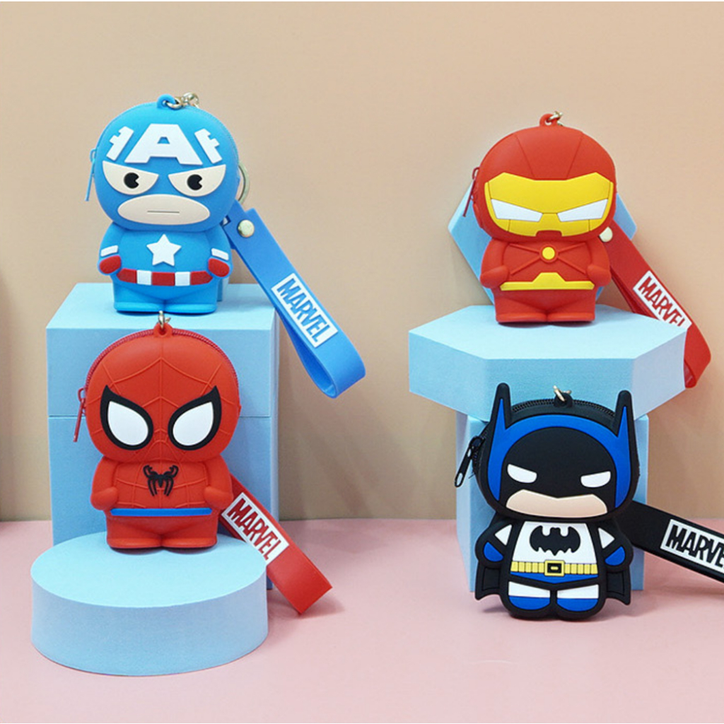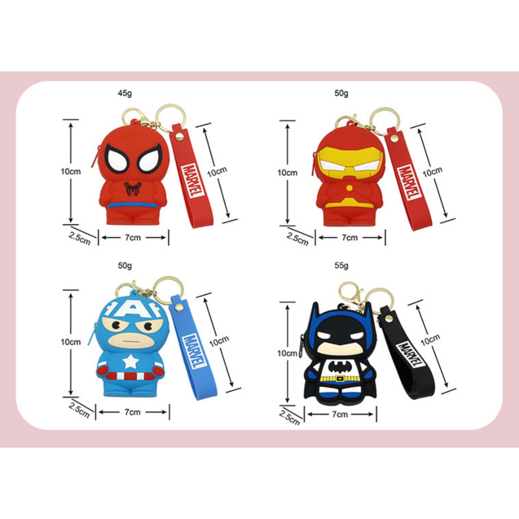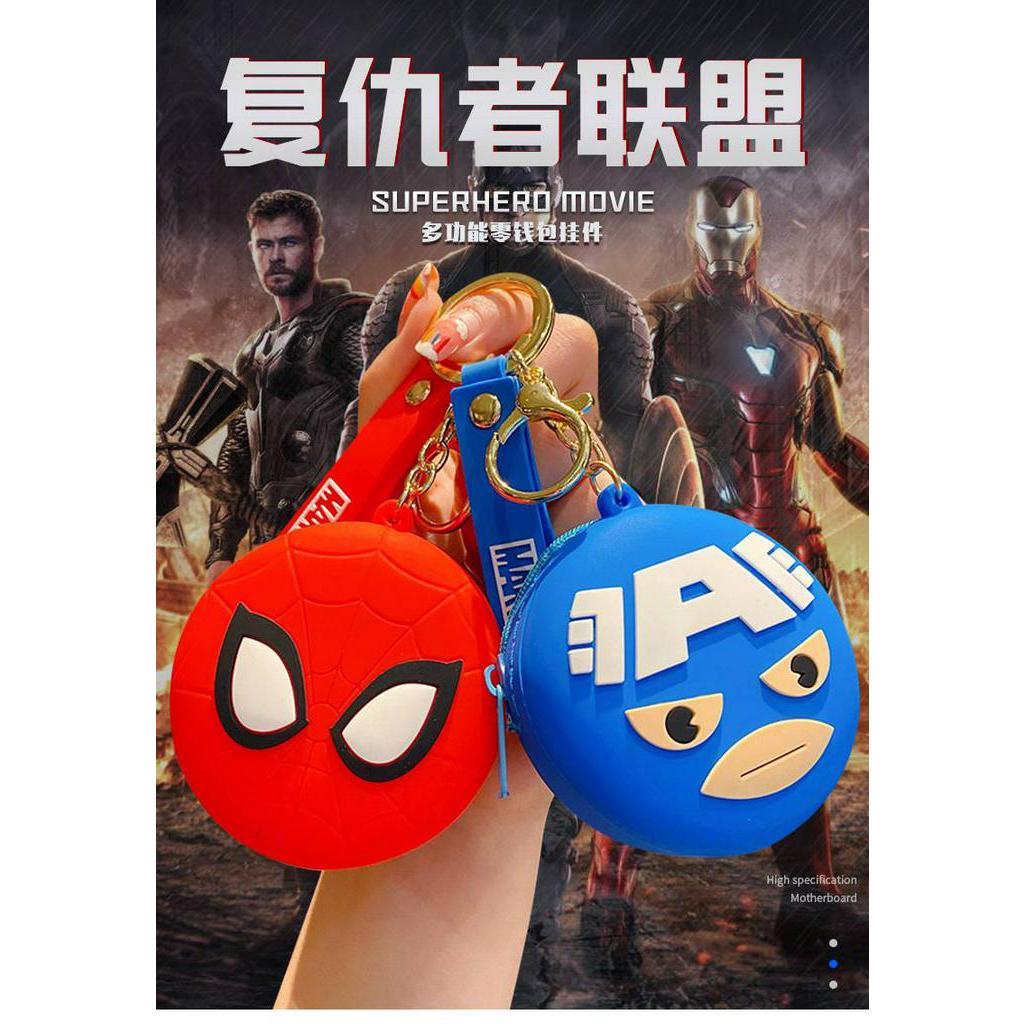 Doledo Ready Stock Silicone Cartoon Coin Purse Avengers Captain America Spiderman Iron Man Thunder God Panther Earphone Bag Lipstick Bag Storage Bag Small Bag