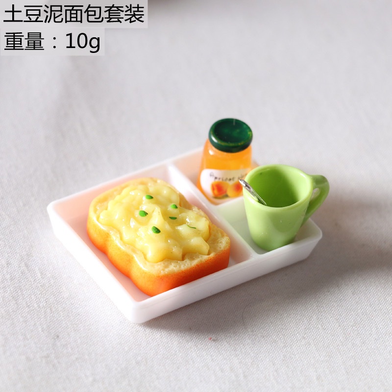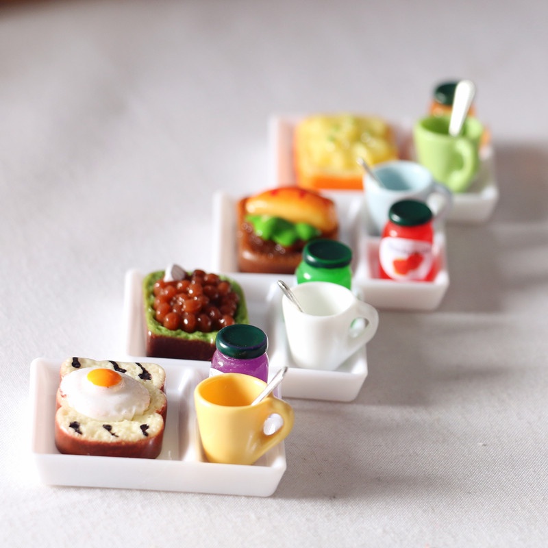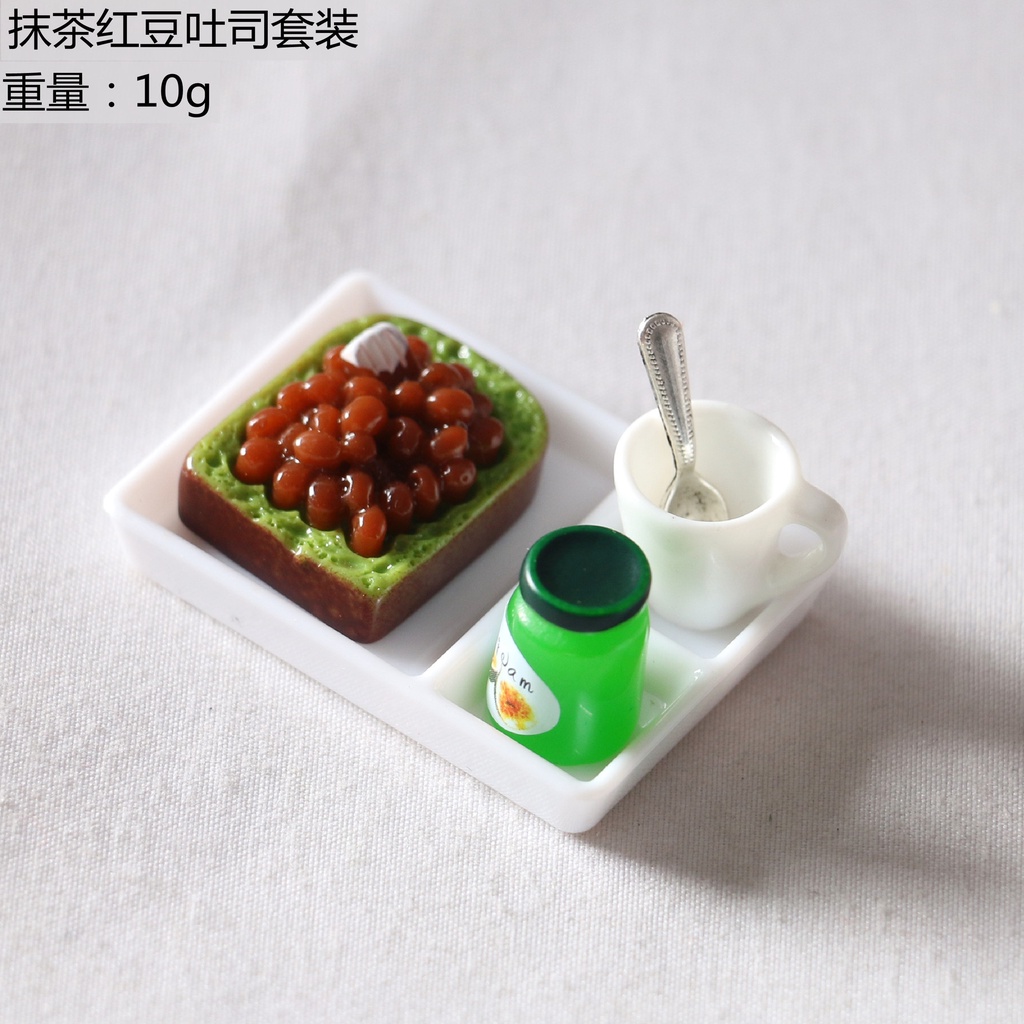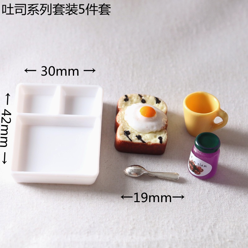 Doll House Miniature Toast Bread Jam Dinner Plate Cup Spoon Food Model OB11 Shooting Props Mini Simulation Scene For Birthday Gifts