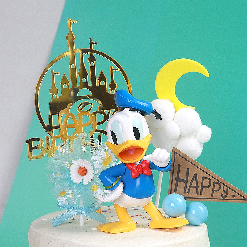 Donald Duck Birthday Cake Top Hat Duck Doll Cake Ornament Cartoon Cake Birthday Ornament Cute Moon Duck Mickey Minnie Decoration Accessories