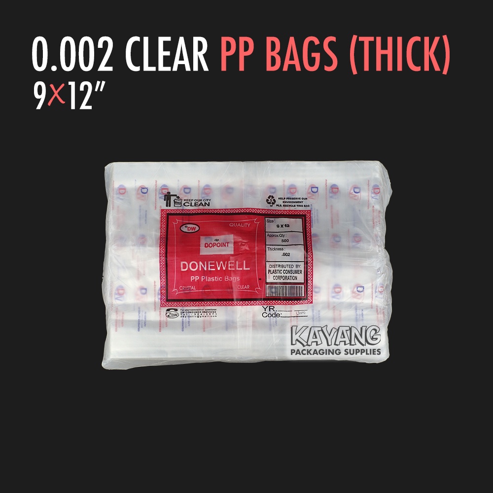 Donewell 0.002 Thick PP Bag Clear Plastic (MAKAPAL) [Large] for Repacking, Food, & Packaging