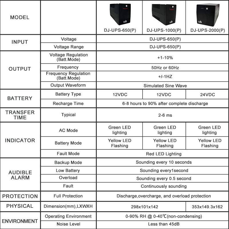 DongJin Power Uninterruptible Power Supply 650VA 1000VA 2000VA with AVR UPS for backup time