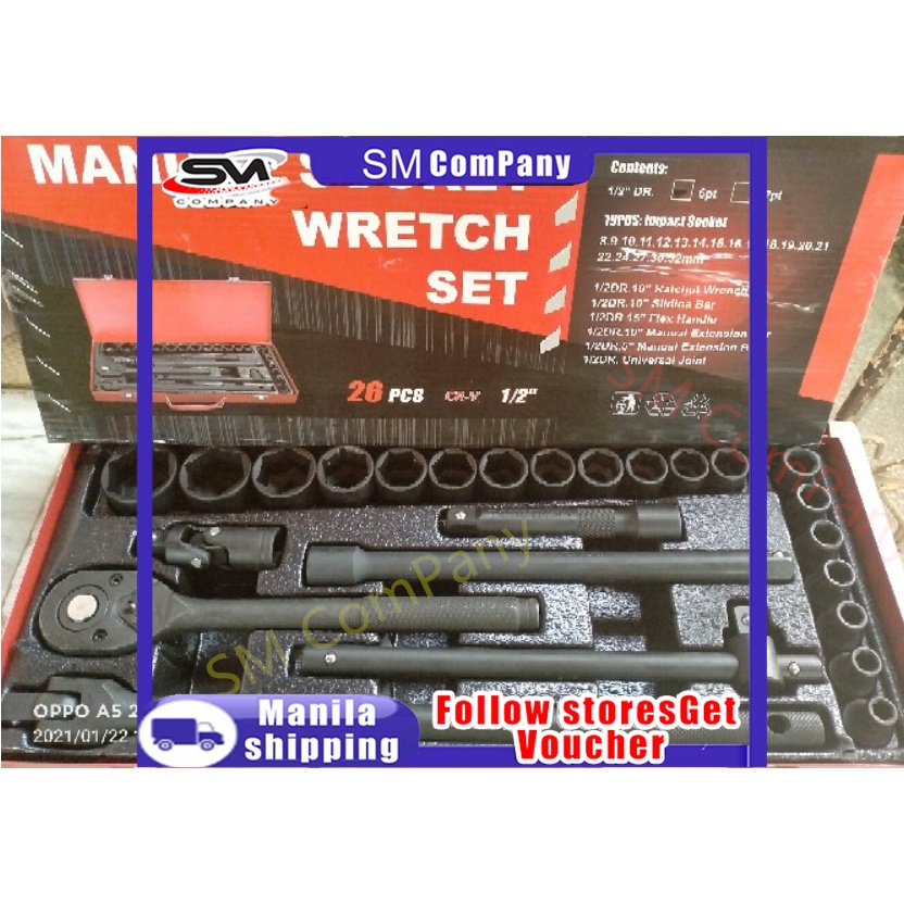 Dongte 17PCS-26PCS SOCKET WRENCH 1/2 DRIVE 6 point/12 point High hardness chromium molybdenum steel